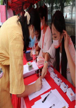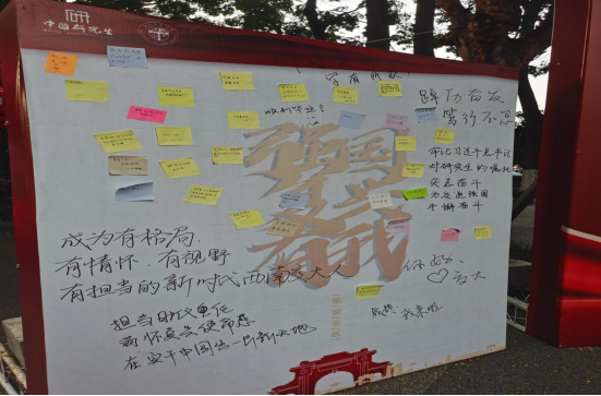 新生在签名墙签字留念