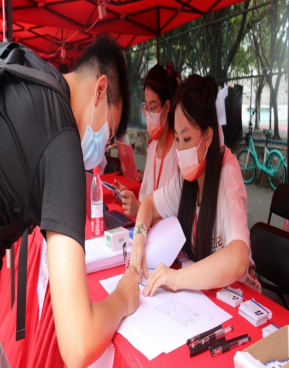 和父母挥手告别,体温测试、扫码、刷卡、消杀……萌新们满怀着理想和憧憬,踏入郁郁葱葱的校园。等候已久的志愿者们和工作人员也开始忙碌起来。在完成消杀环节之后,新生们坐上校园摆渡车,穿过林荫大道,来到校园迎新处。学校在迎新处为新生们搭建了新生咨询台,并设置了签名墙、合影墙等供新生们合影留念。