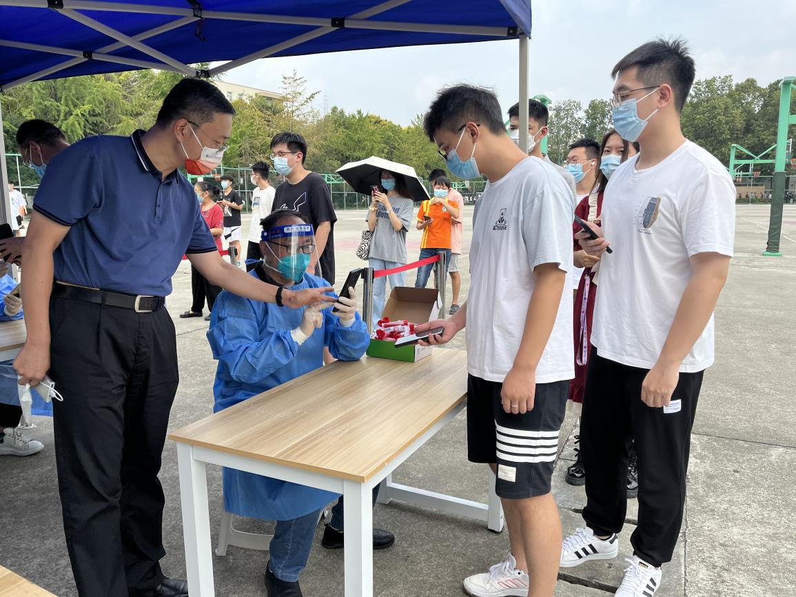 疫情就是命令,防控就是责任,为坚决落实学校党委关于疫情防控的部署要求,助力疫情防控,打好防疫保卫战,在9月1日新一轮核酸检测中,经济管理学院承担九里校区首日的核酸志愿服务工作。学院党委书记王斌、副书记杨宏毅高度重视并积极组织党员志愿者团队,呼吁党员教职工充分发挥党员先锋模范作用,让党旗在战“疫”一线高高飘扬。