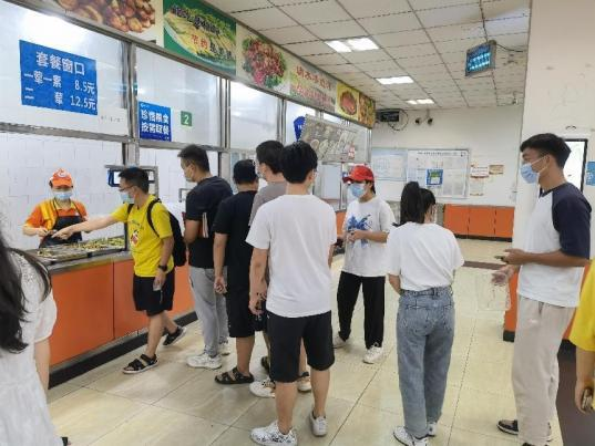 9月2日下午,在得知学校食堂急需志愿者参与维持打餐排队秩序的工作后,经济管理学院团委在校团委统一安排部署下,以学院青年志愿者协会为载体,迅速组建了4个批次,每批次8人的学院团干部志愿者。第一批次志愿者当天下午在经过岗位和防护培训后,第一时间投身到了志愿服务工作中,用爱与关怀为抗击疫情奉献着自己的青春力量。