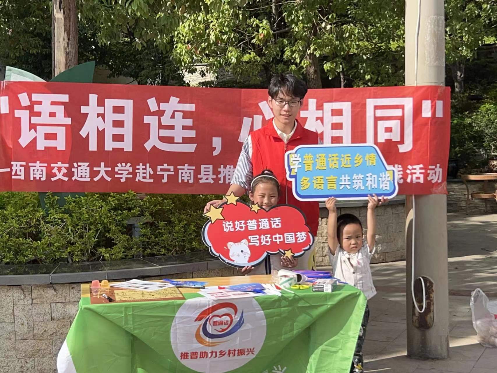 4月30日至5月2日,西南交通大学经济管理学院“语相连,心相同——推普助力乡村振兴“实践团队来到了宁南县,在这里开展了普通话推广及相关调研活动,为西部少数民族语言文字教育助力。在此次实践中,团队通过街头调研,定点摊位,课堂教育,走访宣传等形式,了解当地普通话使用情况,普及民族共同语言,助力乡村振兴。
