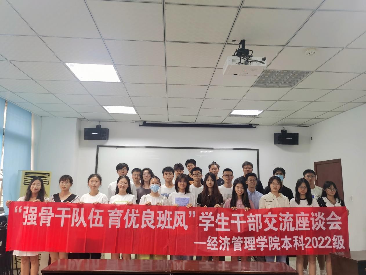 为持续跟进班级学风情况,了解学生在学习与生活方面的思想状况和生活困难,促进班集体之间的交流,更好地迎接即将到来的期末考试,6月1日下午,经济管理学院本科2022级“强骨干队伍 育优良班风”学生干部交流座谈会第四期在J0316举行,本科2022级全体班长和学习委员参加,本期座谈会由辅导员王子琦主持。