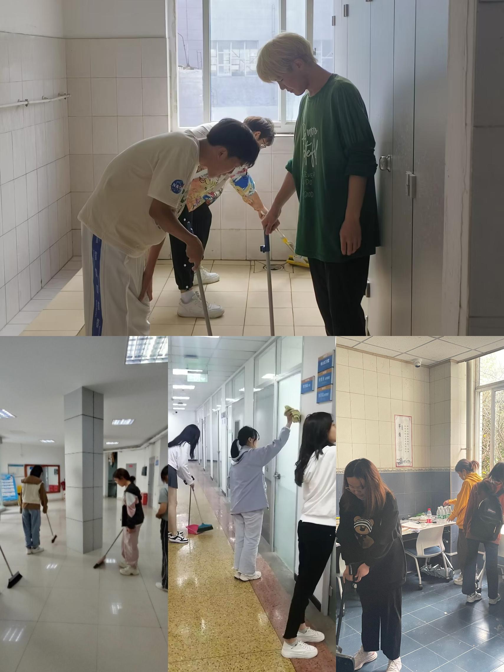 仲春时节风光好,践行劳动美校园。学院持续加强学生宿舍园区的劳动教育建设,开展“洁净践于行 美丽我交大”系列校园劳动实践活动,引导学生身体力行,投入到劳动实践中来。学生园区是大学生学习、交流、生活的重要场所,学院结合春季学期集体劳动日,组织各年级开展宿舍卫生大扫除,让各位同学用双手美化所居环境;并通过志愿者招募及分组、劳动过程和成效反馈等步骤组织学生志愿者,常态化地对学生园区劳动实践区进行清扫劳动,提高了同学们的实践能力和合作能力,促进个人成长;同时,组织学生志愿者以班级为单位对教学楼、自习室等公共区域进行卫生清洁,提升学生在日常学习生活中的劳动意识和劳动能力,同时有利于保持校园环境的整洁美丽。