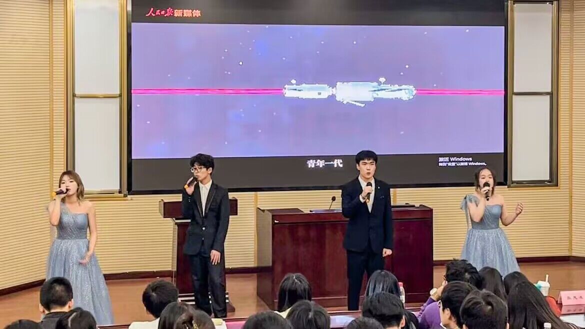 陶子扬从百年建党的历史与青年的关系讲起,分别从李大钊与毛泽东的视角,讲述了青年在建党征程中扮演的至关重要的角色。接着,陶子扬结合现实,以视频的形式展现了青年与当代各行各业的紧密联系,凸显了当代青年中流砥柱的作用。最后大学生艺术团的各位成员深情演唱歌曲《星辰大海》,致敬百年建党历史中挥洒热血的各位青年。