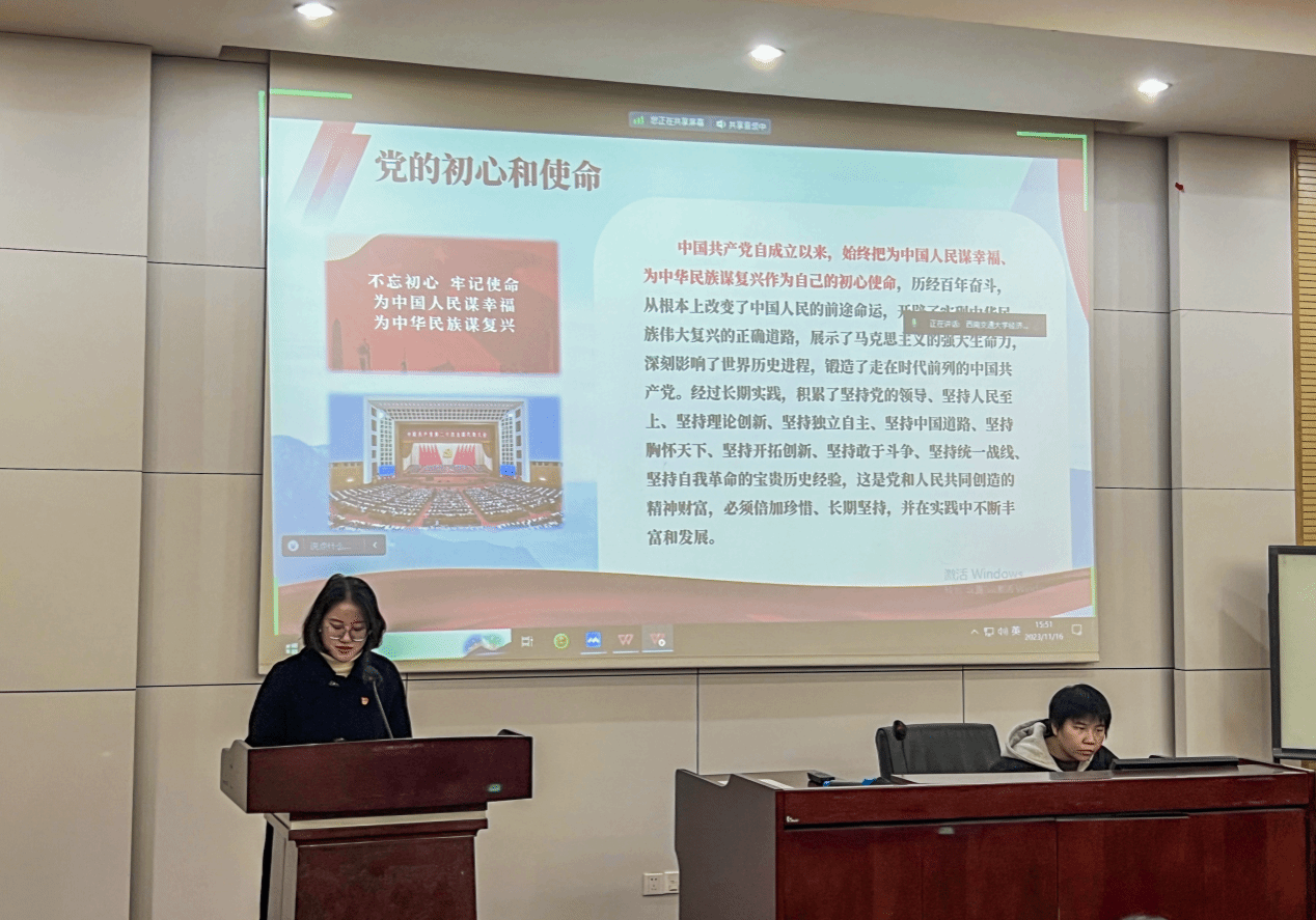 主讲人张露同志带领各成员重温党的初心使命与宗旨,并领学了习近平总书记重要讲话。中国共产党自成立以来,始终把为中国人民谋幸福、为中华民族谋复兴作为自己的初心使命,历经百年奋斗,从根本上改变了中国人民的前途命运,开辟了实现中华民族伟大复兴的正确道路。张露同志领学了“为人民服务”这一宗旨提出的背景与发展历程,从1939年的首次提出、1945年党的七大将其写入党章再到现在,作为中国共产党根本宗旨,“全心全意为人民服务”像一根红线贯穿党百余年的历史,激励一代代中国共产党人前赴后继、英勇奋斗。在学习习近平总书记重要讲话的过程中,各位成员深刻领悟党的宗旨,也更透彻地理解了习近平总书记所说的“全面建成社会主义现代化强国,人民是决定性力量”。