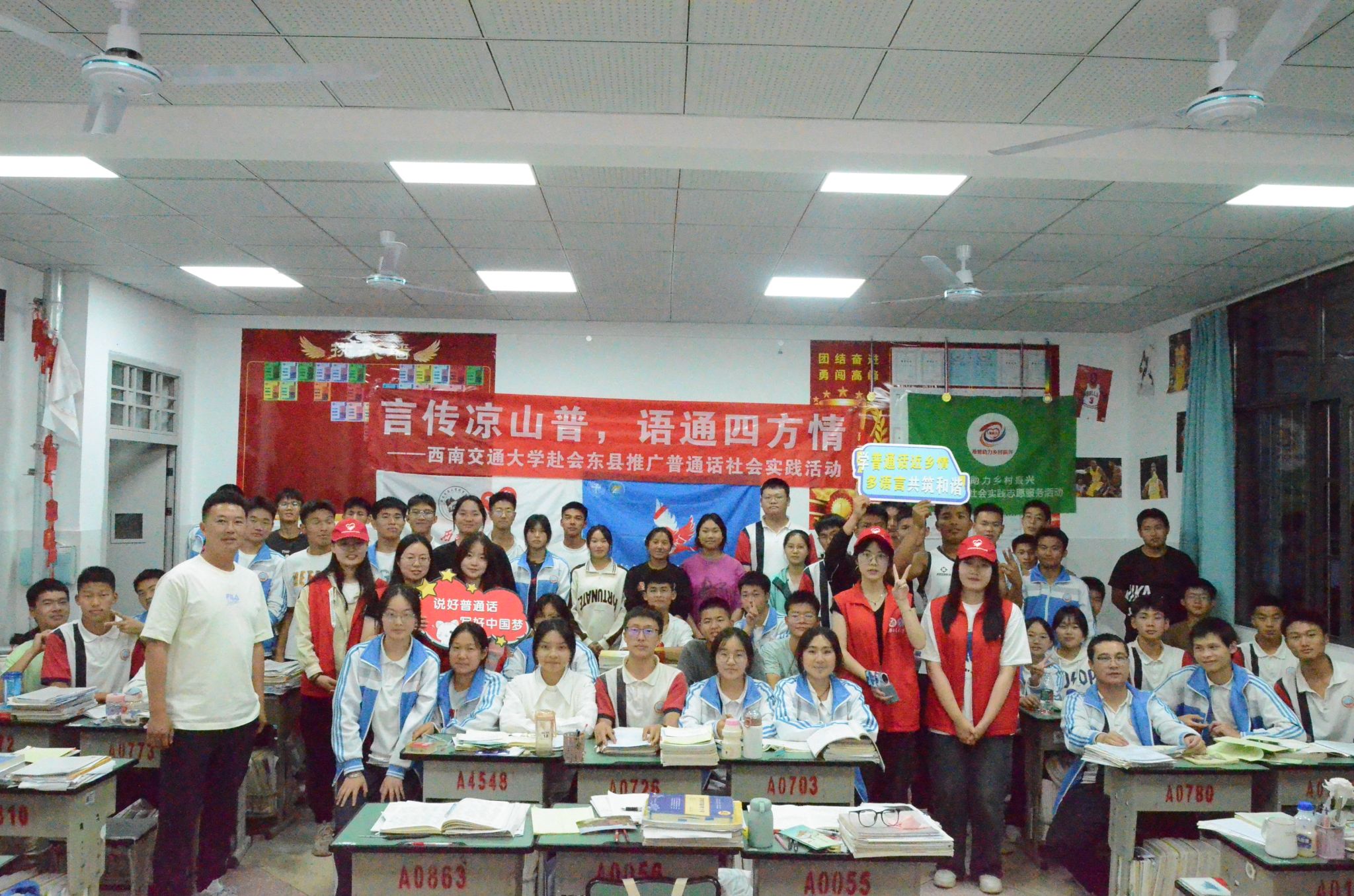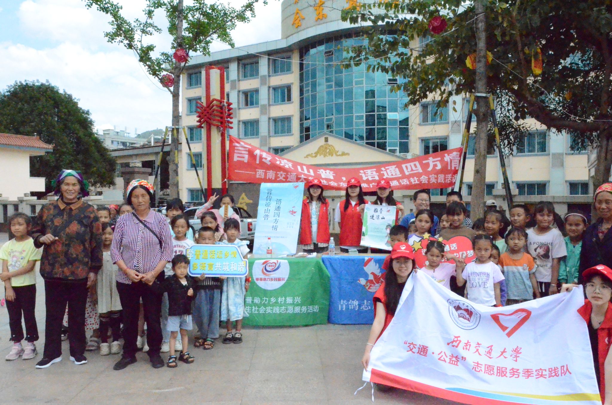 为深入贯彻落实习近平总书记关于教育的重要论述和关于语言文化的重要指示批示精神,进一步推动西部地区少数民族语言文字教育发展,服务铸牢中华民族共同体意识,助力乡村振兴战略实施,5月2日至5月4日,西南交通大学经济管理学院青鸽志愿服务队一行深入四川省凉山彝族自治州会东县,开展“言传凉山普,语通四方情——推普助力乡村振兴”社会实践活动。在此次实践中,团队通过街头调研,定点摊位,课堂教育,走访宣传等形式,开展普通话调研和推广活动,普及民族共同语言,促进中华优秀语言文化传承和发扬,为赓续中华文明倾注青年力量,以青春之行助力乡村振兴。