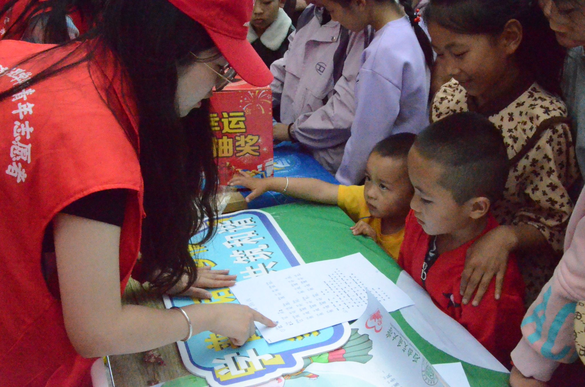 活动第一天,团队成员在会东县人和广场摆设宣传摊位,开展宣传活动,吸引了众多过往行人的目光。一方面,团队为当地彝族同胞发放普通话宣传手册,积极宣传普通话的重要性。另一方面,团队邀请彝族同胞来到摊位旁,参加“跟音跟读”、“绕口令比赛”、“易错字纠正”、“朗诵文章”等富有趣味性的活动,吸引了众多大小朋友的参与。