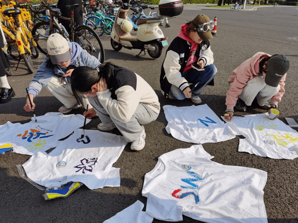 在工作人员的组织下,参加本次活动的同学们有序领取白T恤并进行自由创作。同学们精心设计的T恤,彰显着自己青春的个性,成为校园中一道别样的风景。