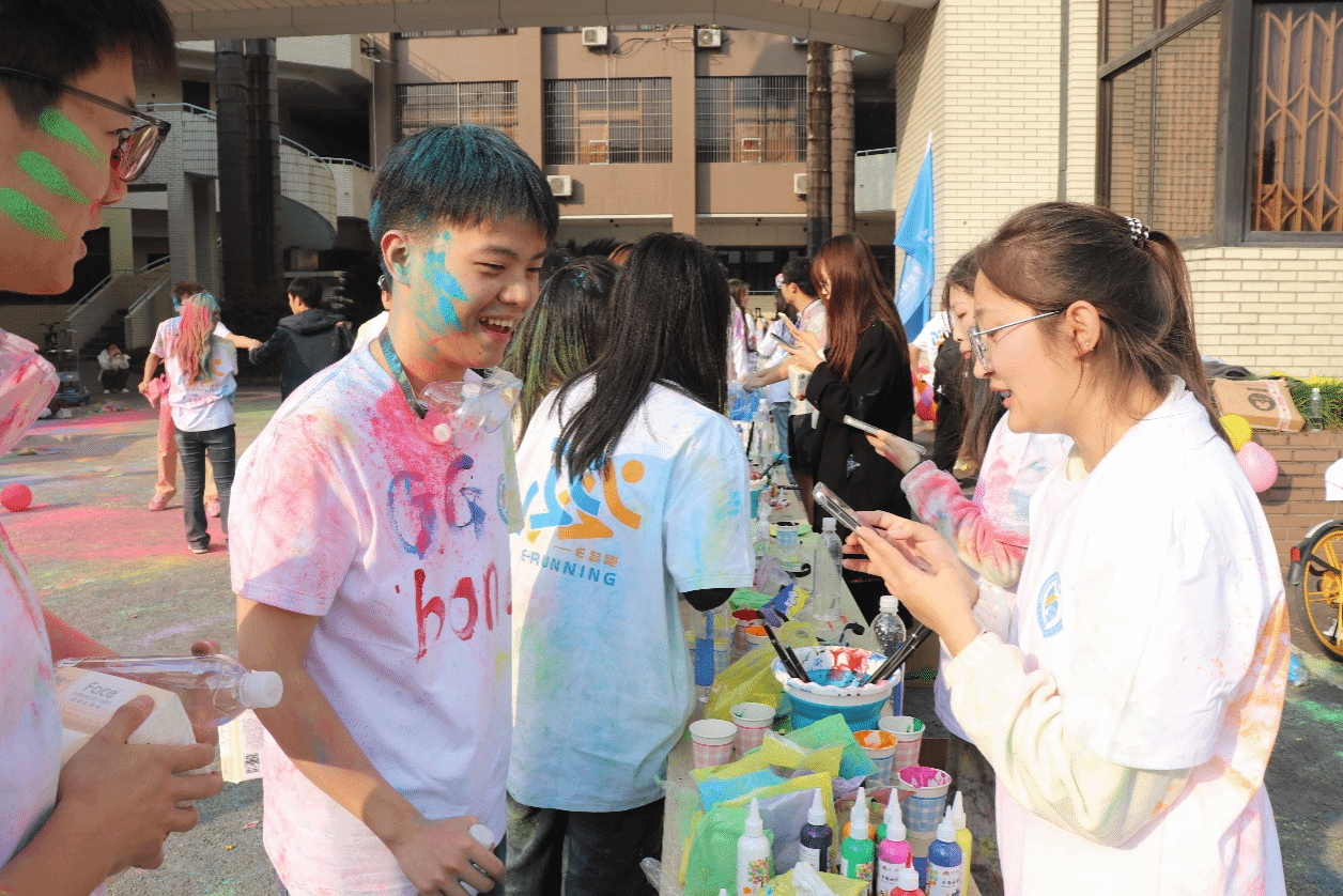 同学们身着最初的白T恤从起点出发,恰似大一初入校园时懵懂纯真的模样,而最终满身绚丽地冲过终点,又宛如历经丰富多彩的大学生活磨砺后,将以更加自信饱满的姿态迈向人生的新征程。他们三两结伴,相互鼓励,全然忘却了身体的疲惫,现场气氛热烈非凡,高潮迭起。
