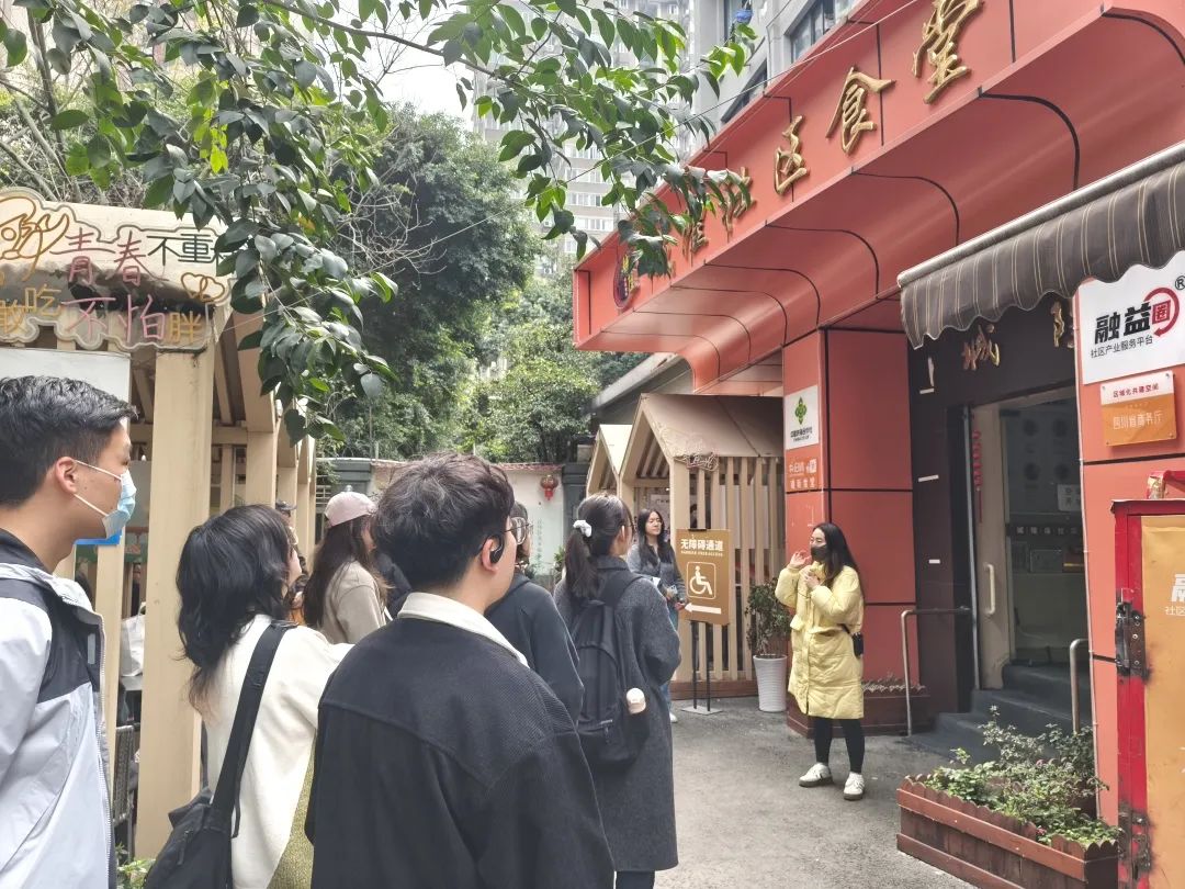 活动中,学生们实地走访了成华巷“15分钟便民生活圈”,深入了解了智慧化社区运营模式,并参观了西设家苑社区改造项目。通过亲身体验,学生们对基层治理的创新实践与温情服务有了更为深刻的认识。2022级本科生王星月表示:“以往对社区工作的认知较为局限,此次体验让我深刻体会到,基层治理不仅需要扎实的专业能力,更需要强烈的责任感与奉献精神。”
