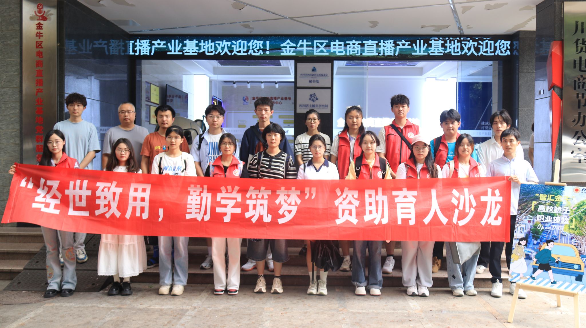 为深化资助育人理念、助推乡村振兴战略,引导大学生树立科学择业观,5 月 22 日,西南交通大学经济管理学院学子前往金牛区电商直播产业基地,在沉浸式职业体验中探索"直播经济+乡村振兴"的融合密码,近距离感受电商新业态魅力,探索职业生涯新路径。