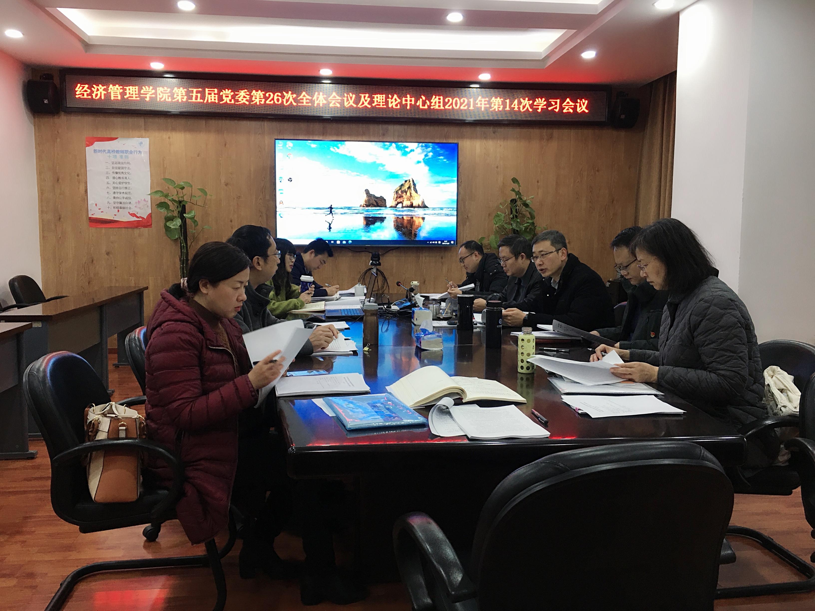 2021年12月8日上午8:30,经济管理学院第五届党委在九里校区零号楼0607会议室召开了第26次全体会议,并进行了2021年第14次理论学习中心组学习。会议和学习由学院党委书记王斌主持,学校党委组织部陈燕灵老师列席了会议。