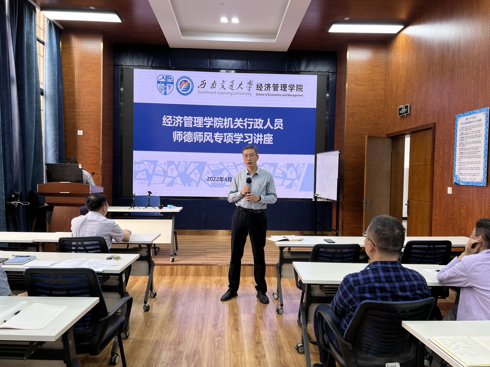 为深入学习贯彻习近平新时代中国特色社会主义思想和党的十九大精神,深入贯彻落实全国教育大会精神,扎实推进《中共中央 国务院关于全面深化新时代教师队伍建设改革的意见》的实施,按照学校《关于开展西南交通大学师德师风建设应知应会专项学习的通知》要求,2022年4月28日下午4点,学院机关第一和第二党支部在九里校区0218会议室组织管理岗工作人员集中开展了师德师风建设专项学习教育。