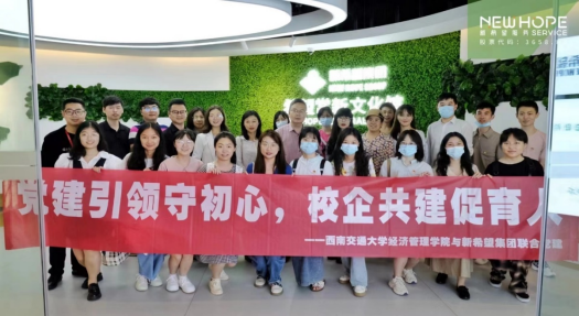 以党中央关于“六稳”、“六保”的决策部署为引领,西南交通大学经济管理学院党委积极发挥党建引领作用,坚持把稳就业作为重大政治责任,立足“抓好党建促就业”总体思路,积极探索,大胆创新,把党建融入就业工作中。2022年6月2日下午,经济管理学院党委副书记夏显波带队赴新希望物业服务集团进行联动党建,开展学习交流活动,参加活动的还有学院专业教师叶萌、胡少龙、罗华江、刘玉焕,学院党务秘书李洪辉,学院国内合作与校友事务中心副主任张笑芸,院团委书记、学工组副组长贾佳,辅导员苏扬、陈海波以及硕士2021级第四党支部部分学生党员。