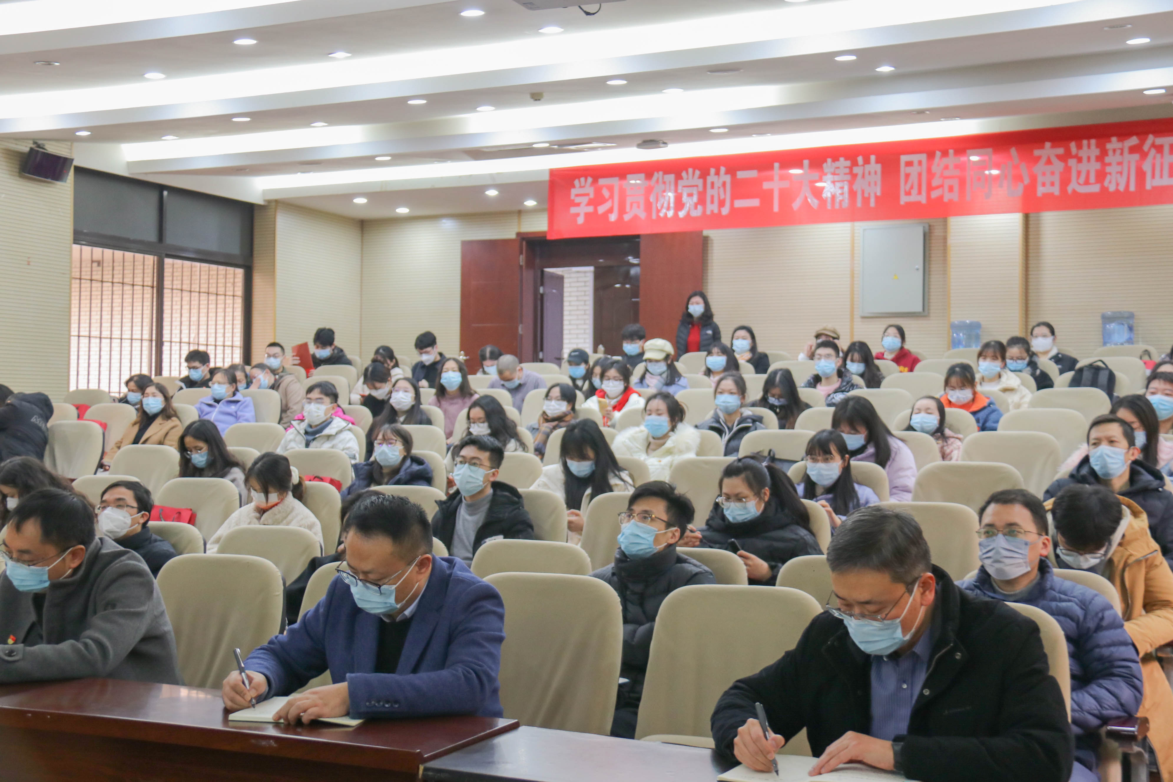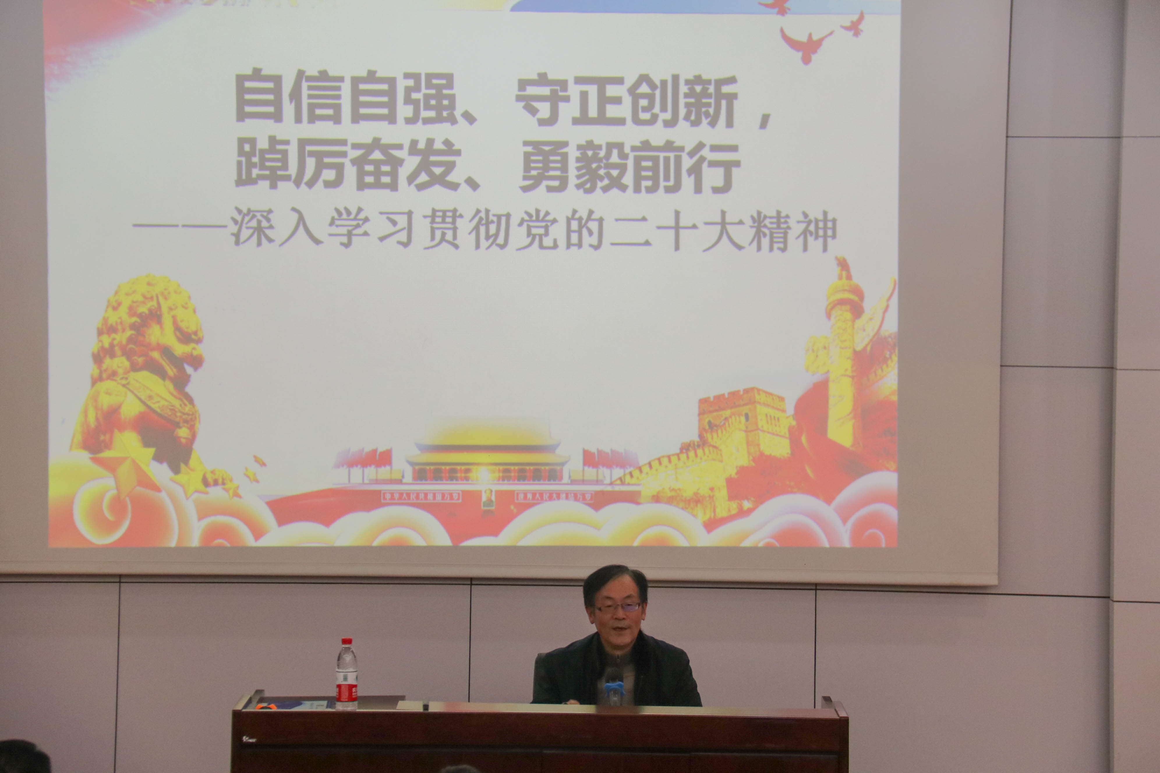王斌在报告会主持中指出,刘占祥教授的专题辅导报告深入浅出、入心入脑,希望全院师生认真学习和深入贯彻落实党的二十大精神,希望全院师生团结一心,自信自强、守正创新,踔厉奋发、勇毅前行,全力推进学院各项工作又好又快发展,为实现党的第二个百年奋斗目标、共同把中国建设成为富强民主文明和谐美丽的社会主义现代化强国做出更多更大的贡献。