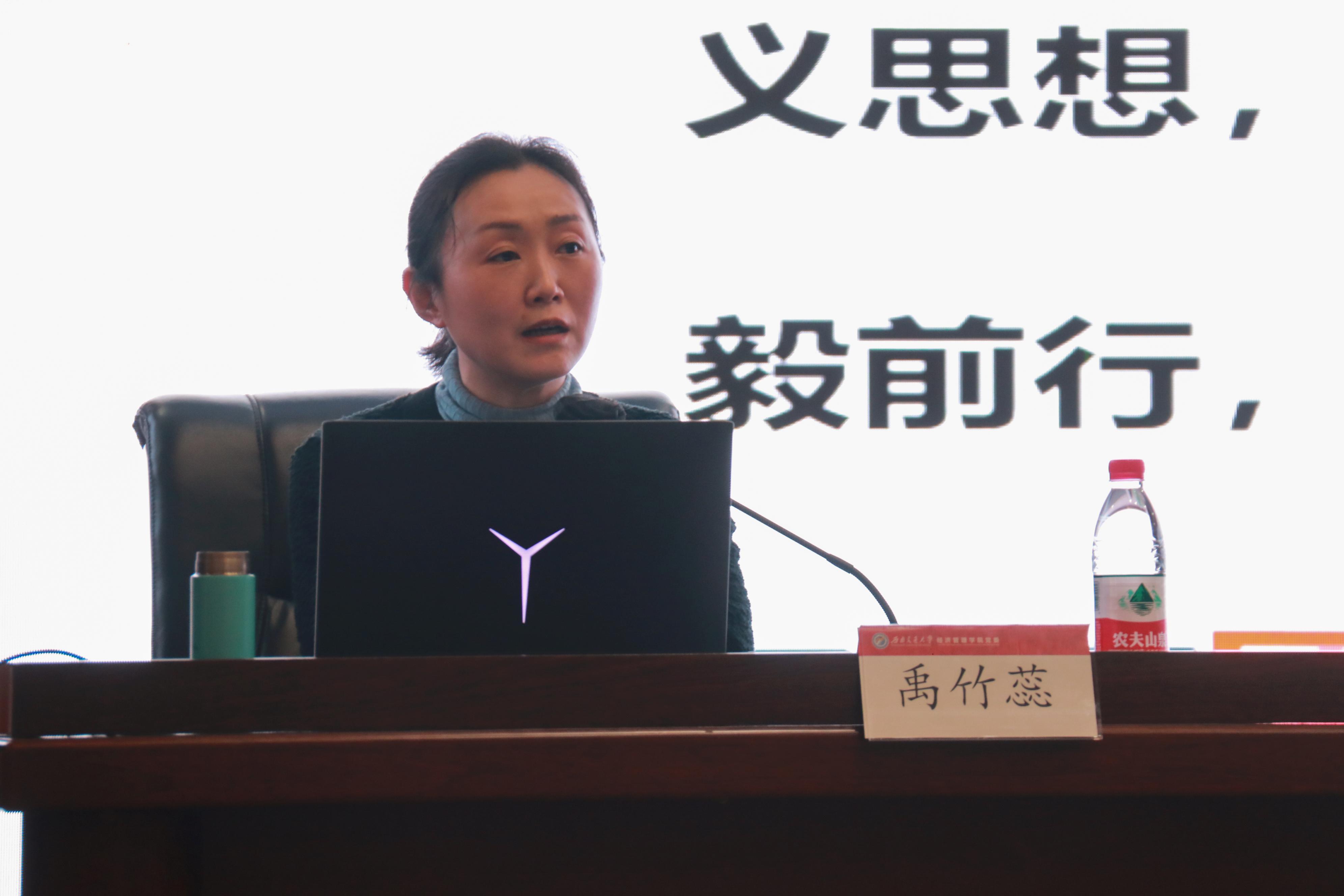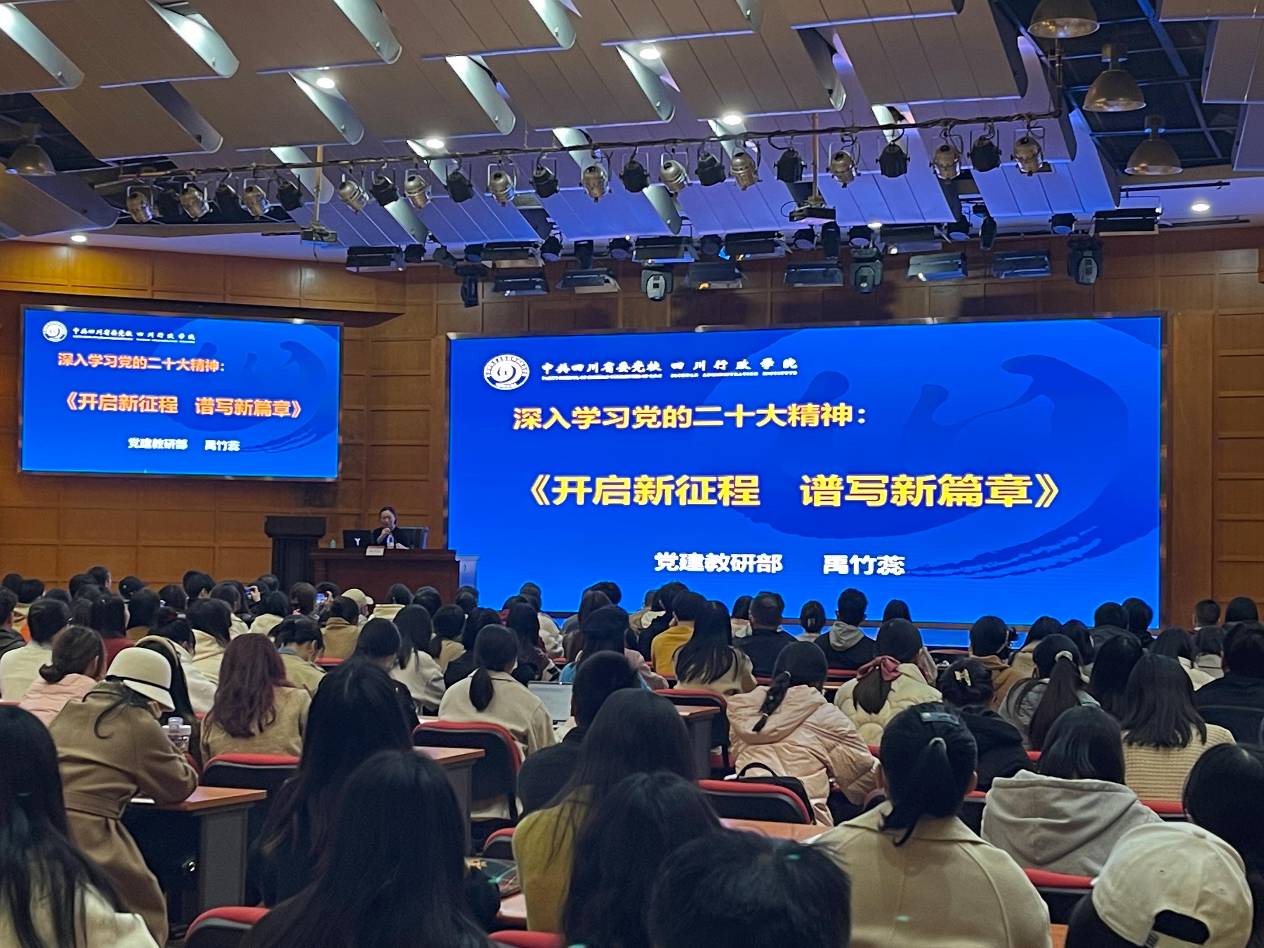 为深入学习贯彻党的二十大精神,引导全院师生党员深刻理解党的二十大作出的新部署新要求,上好“开学第一课”,学院党委于3月2日下午,邀请四川省委党校党建教研部教授、四川省党内法规建设智库首席专家禹竹蕊教授作了题为“深入学习党的二十大精神:开启新征程,谱写新篇章”的专题辅导报告,学院全体师生党员参加。报告会由学院党委书记王斌主持。