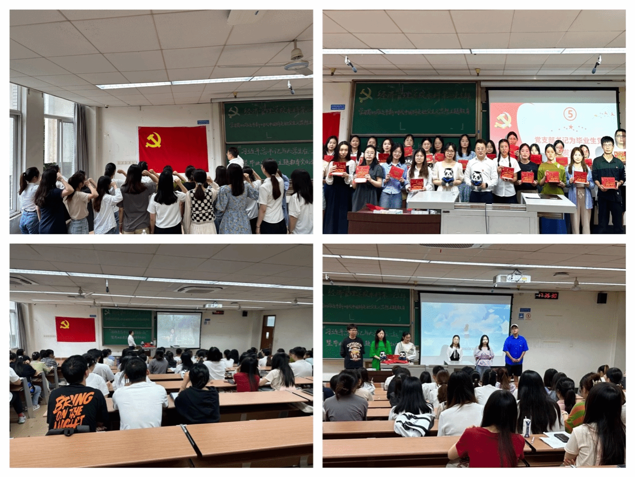 6月15日,经济管理学院本科第二党支部开展学习贯彻习近平新时代中国特色社会主义思想主题教育——“习近平总书记与大学生在一起”暨毕业生党员主题教育党日活动。首先,毕业生党员领学分享习近平总书记给大学生的重要回信和习近平总书记到各大学视察时的重要讲话精神;然后,大家集体观看党支部成员为毕业生党员录制的视频;紧接着,党支部全体成员为2019级毕业生献歌;随后,毕业生党员重温入党誓词;最后党支部为毕业生党员颁发入党生日贺卡。通过主题党日活动积极教育引导党员深刻领悟“两个确立”的决定性意义,不断增强“四个意识”、坚定“四个自信”、做到“两个维护”,树立远大理想,担当时代责任。