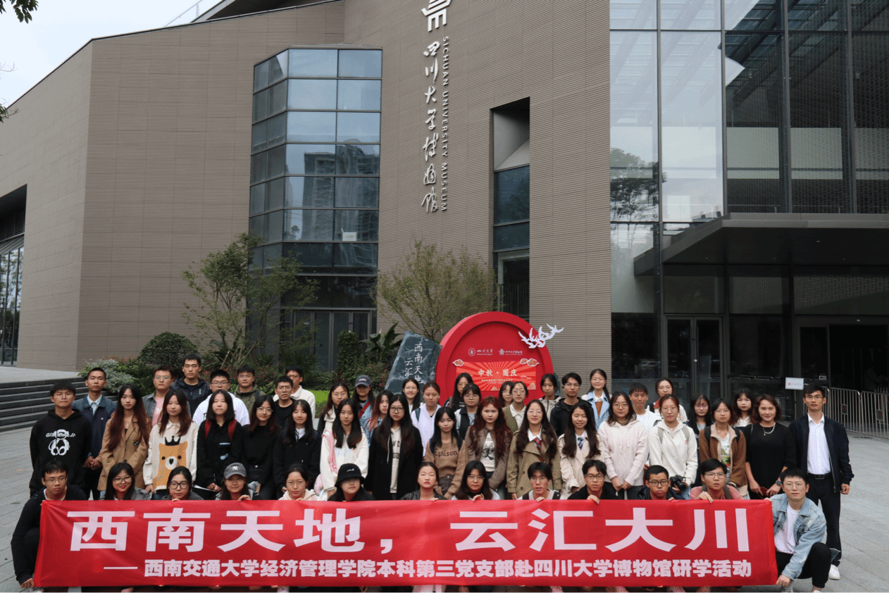 为提升支部成员对中华优秀传统文化的认识,增强文化认同感和民族归属感,增强历史自觉,坚定文化自信,10月12日下午,经济管理学院本科第三党支部书记苏扬和副书记张媛媛带队前往四川大学博物馆,开展本科第三党支部“西南天地,云汇大川”主题研学活动,支部党员和入党积极分子共同参加了本次活动。