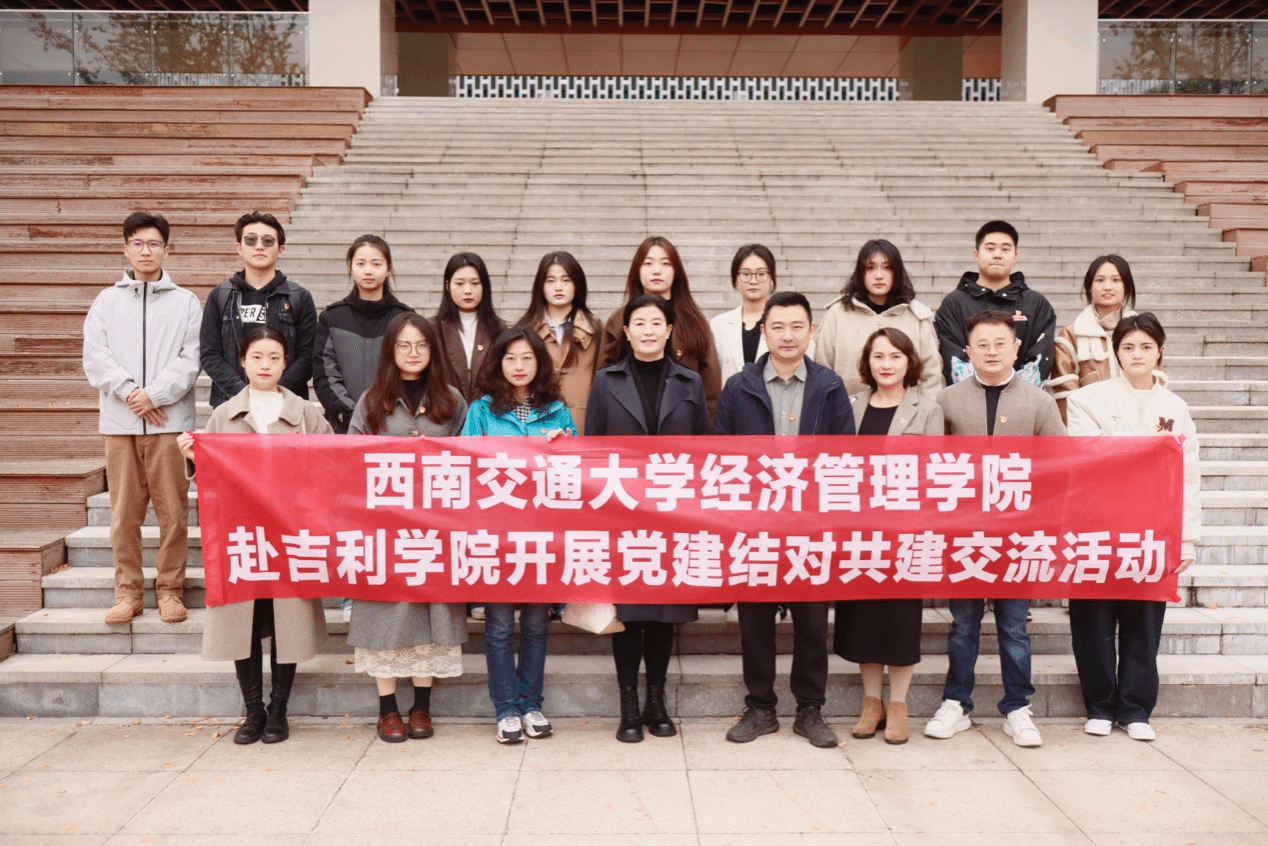 为建立公办高校与民办高校党支部建设新途径,探索基层党组织之间优势互补、资源共享、共同发展的党建新思路,西南交通大学经济管理学院联合吉利学院盛宝金融科技学院共同开展了以“互学互鉴促交流,党建引领共发展”为主题的党建结对共建交流活动。