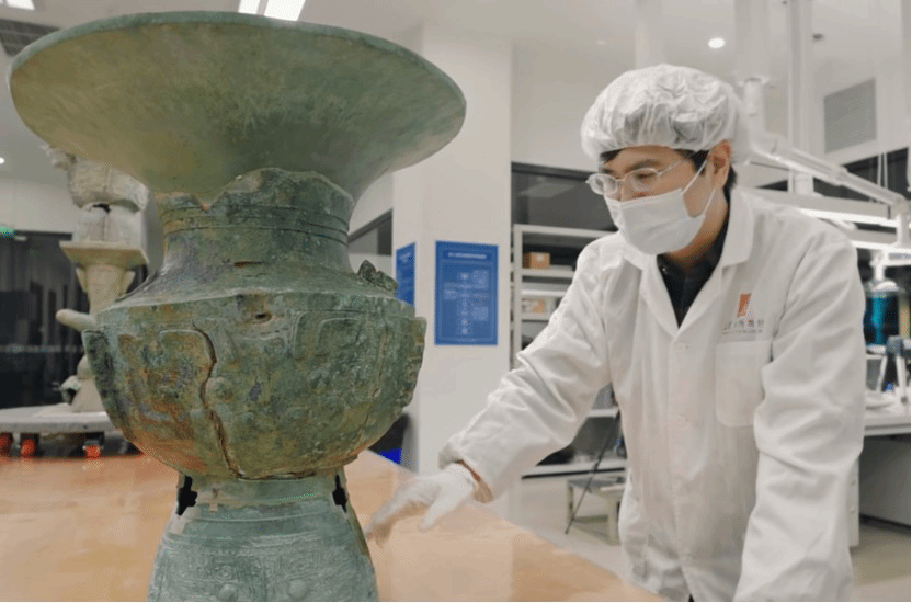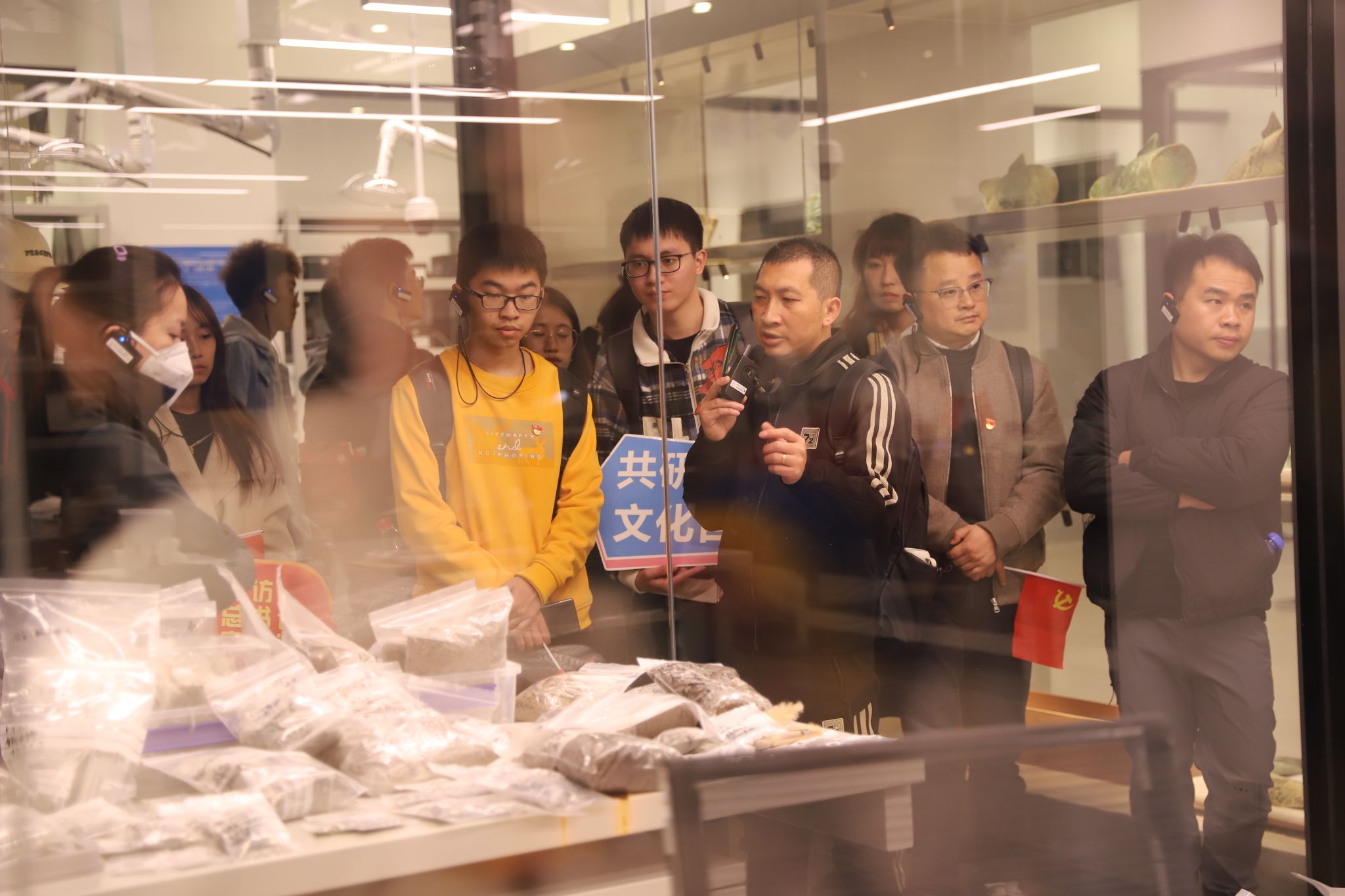 三星堆遗址被誉为“长江文明之源”,距今已有3000至5000年历史,它深厚的文化内涵令世人瞩目。在三星堆博物馆,党支部跟随着习近平总书记的足迹首先来到了三星堆文物保护与修复馆。习近平总书记曾提到“考古工作是展示和构建中华民族历史、中华文明瑰宝的重要工作”,隔着一层玻璃,大家看到考古工作人员在小心翼翼地清理和修复文物,将一块块碎片拼成一个整体,这让党支部成员直观了解到三星堆考古工作是如何开展的,也便于在接下来的参观中理解文物的内涵。