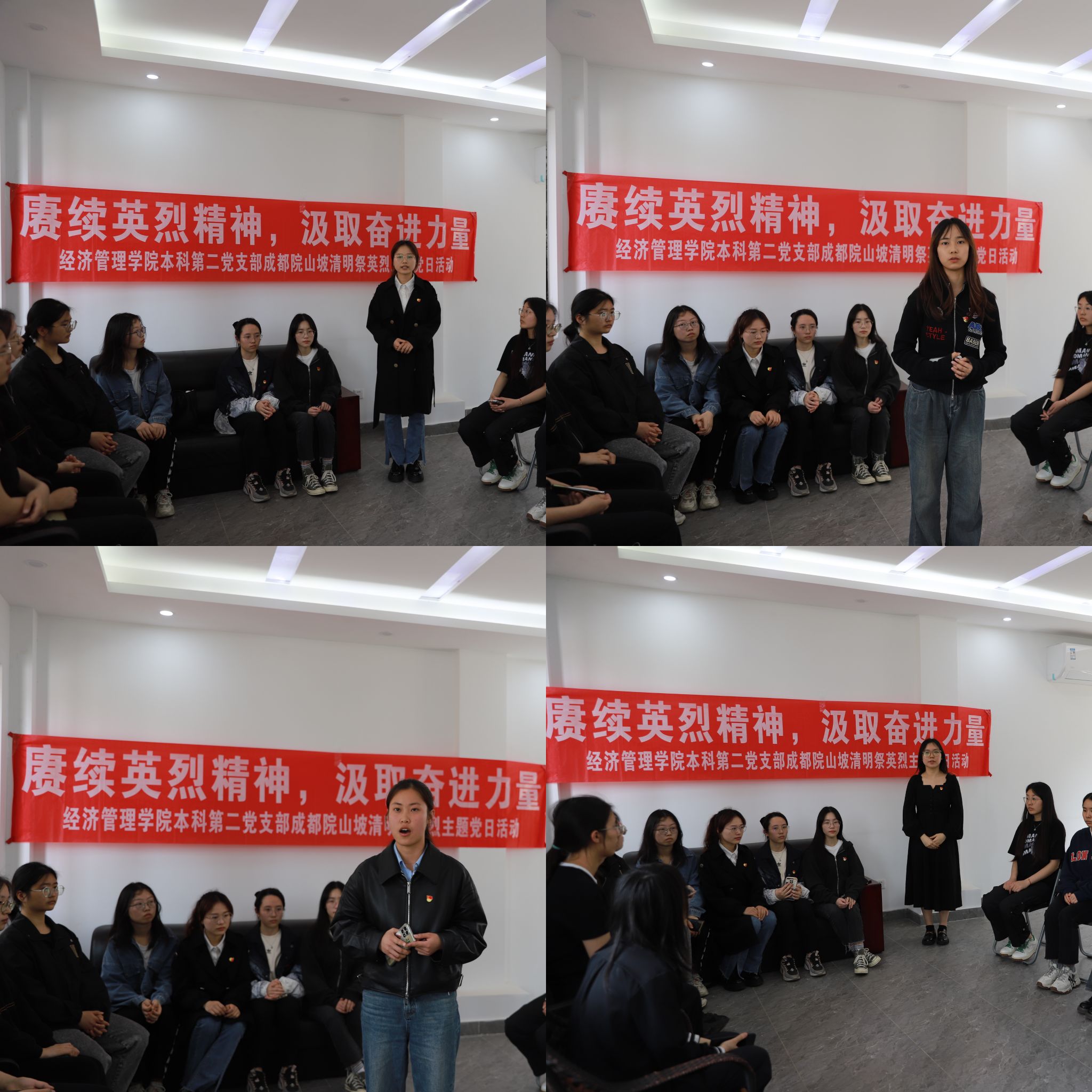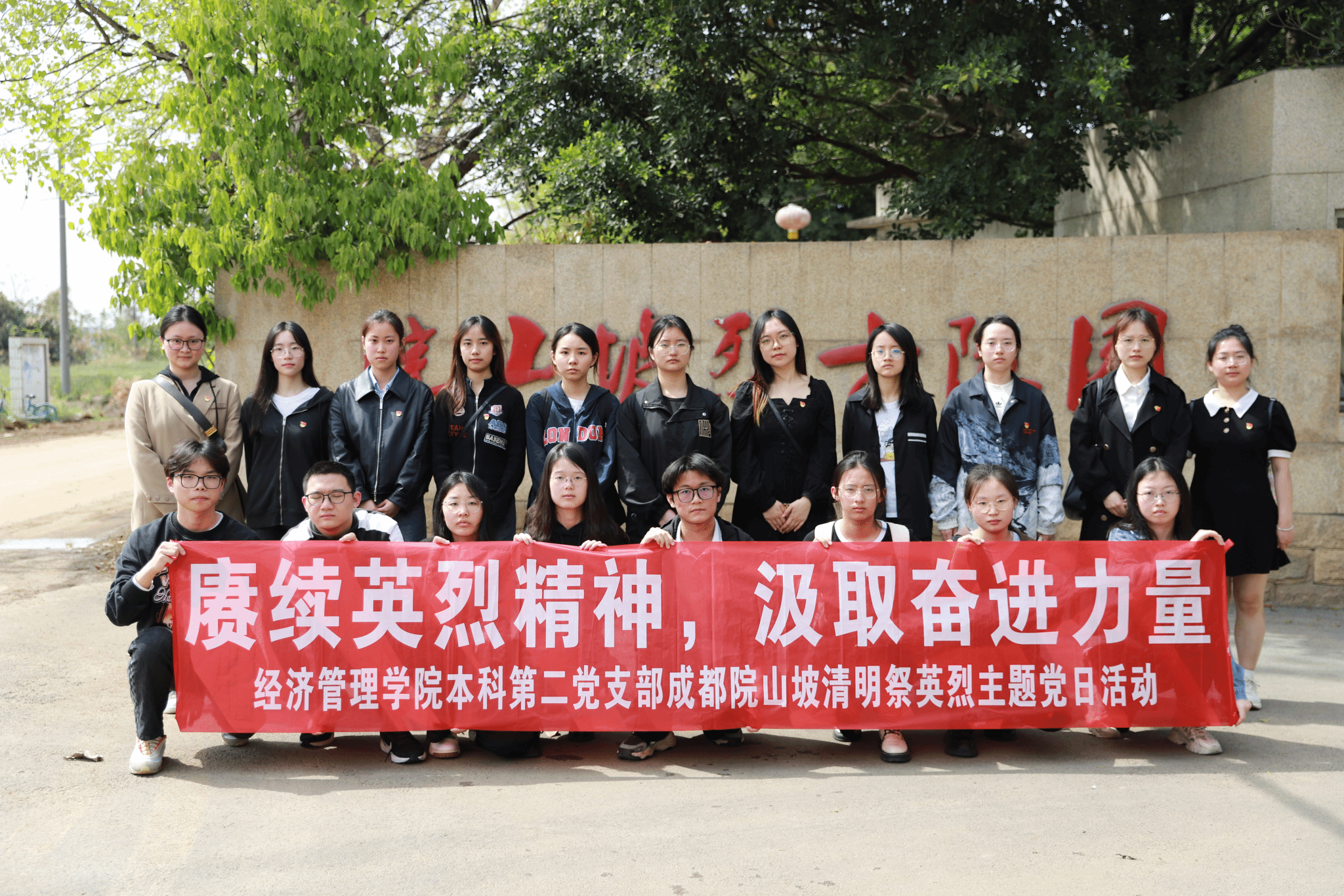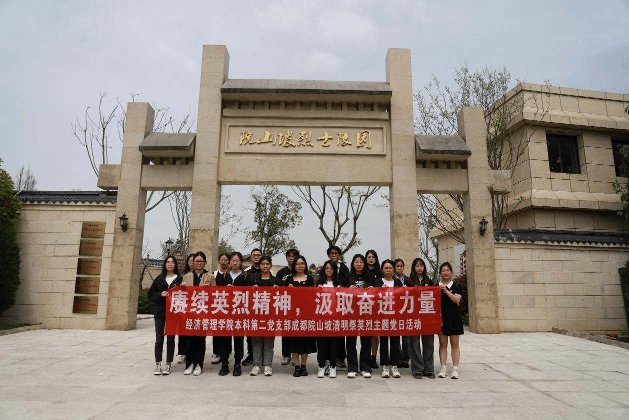 春风拂陵草青青,英雄浩气贯长空。在万物生长、春意盎然的美好时节,“清明”提醒我们停下脚步、驻足回望。“清明”不仅是遥寄相思,缅怀先祖的日子;更是追思英烈忠魂,回首国家艰辛来路的重要载体。为深刻缅怀革命先烈,赓续红色血脉,汲取奋进力量,4月4日,经济管理学院本科第二党支部组织党员和入党积极分子前往成都市院山坡烈士陵园开展“赓续英烈精神,汲取奋进力量”清明祭英烈主题党日活动。