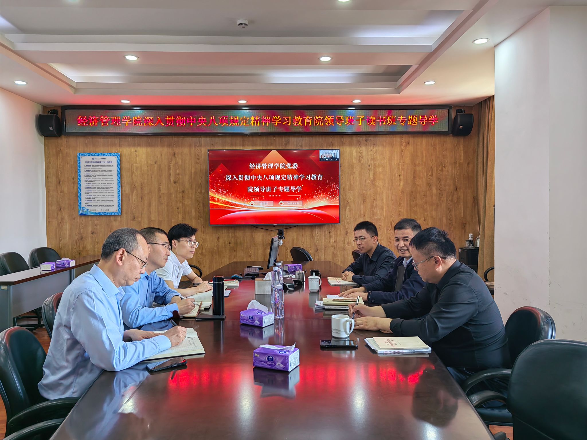4月24日,学院领导班子在0607会议室开展深入贯彻中央八项规定精神学习教育专题读书班学习。会议由党委书记郭强主持。