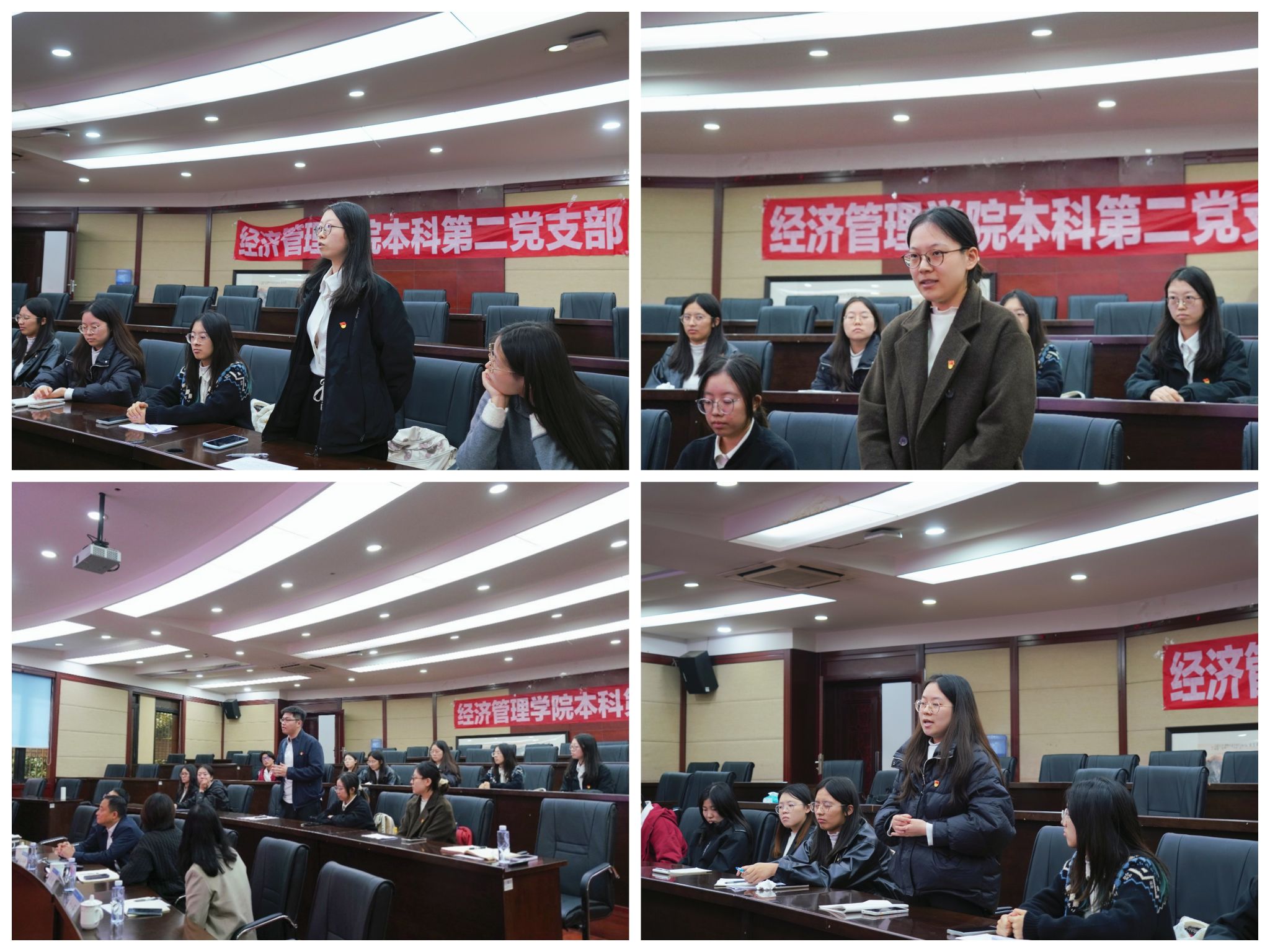 为深入学习贯彻习近平总书记关于教育的重要论述和党的二十届四中全会精神,2025年11月6日下午,经济管理学院本科第二党支部于J0228组织开展“聚焦教育强国梦,青年有为勇担当”第三次党员集中大课培训交流研讨活动。校党委副书记高平平,经济管理学院党委书记蒋佳、副书记余小英,党委办公室秘书科科长刘立国参加支部交流研讨活动。活动由本科第二党支部书记陈建奇主持。