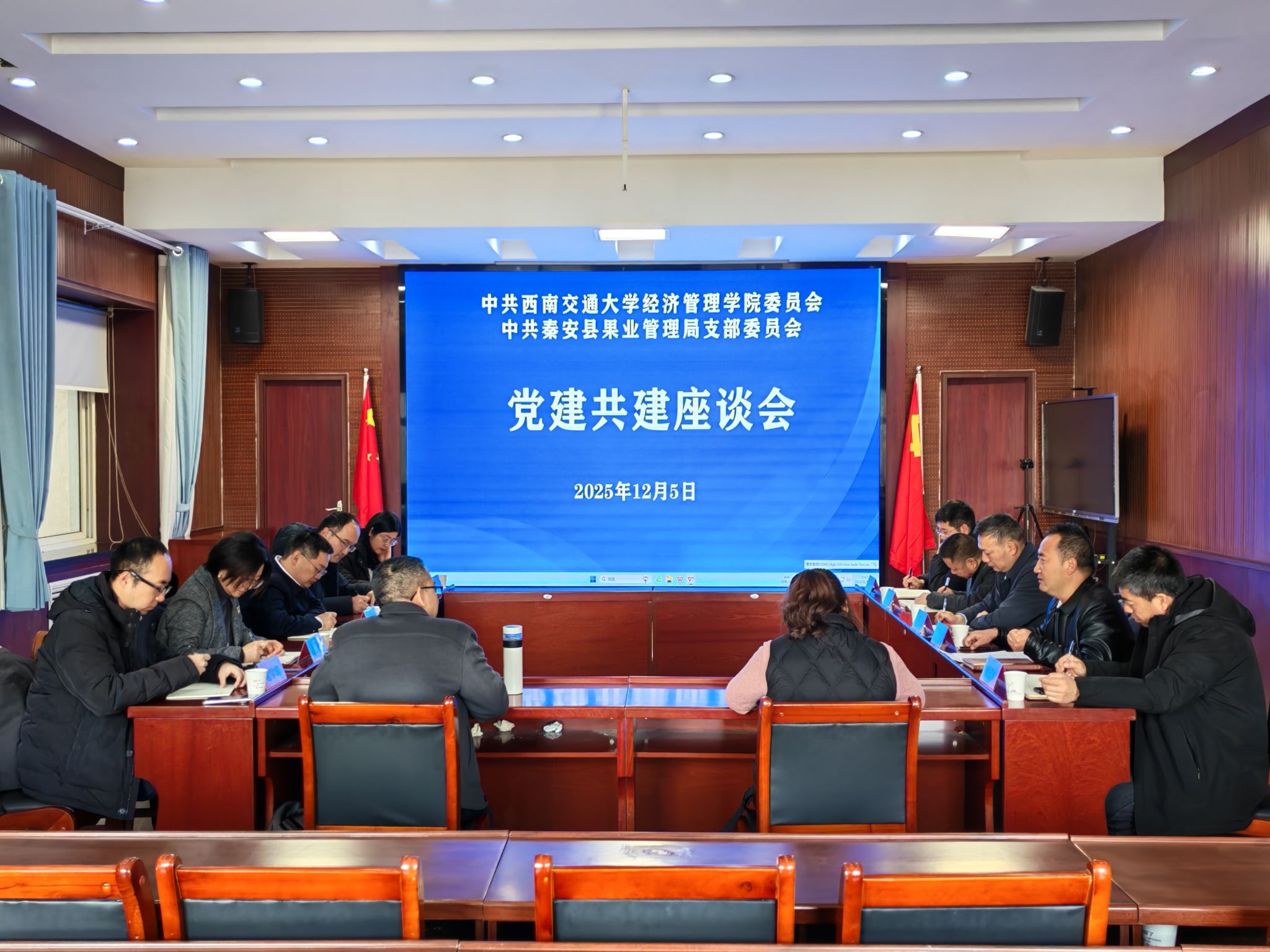 12月4日至5日,由西南交通大学党委常委、组织部部长朱剑松带队,学校合作发展处处长孟新智,经济管理学院党委书记蒋佳,校友企业负责人范宇宸等一行赴甘肃省秦安县,与秦安县果业管理局开展“党建共建”调研交流,以党建共建为龙头、校友企业为助力,赋能秦安果业发展。