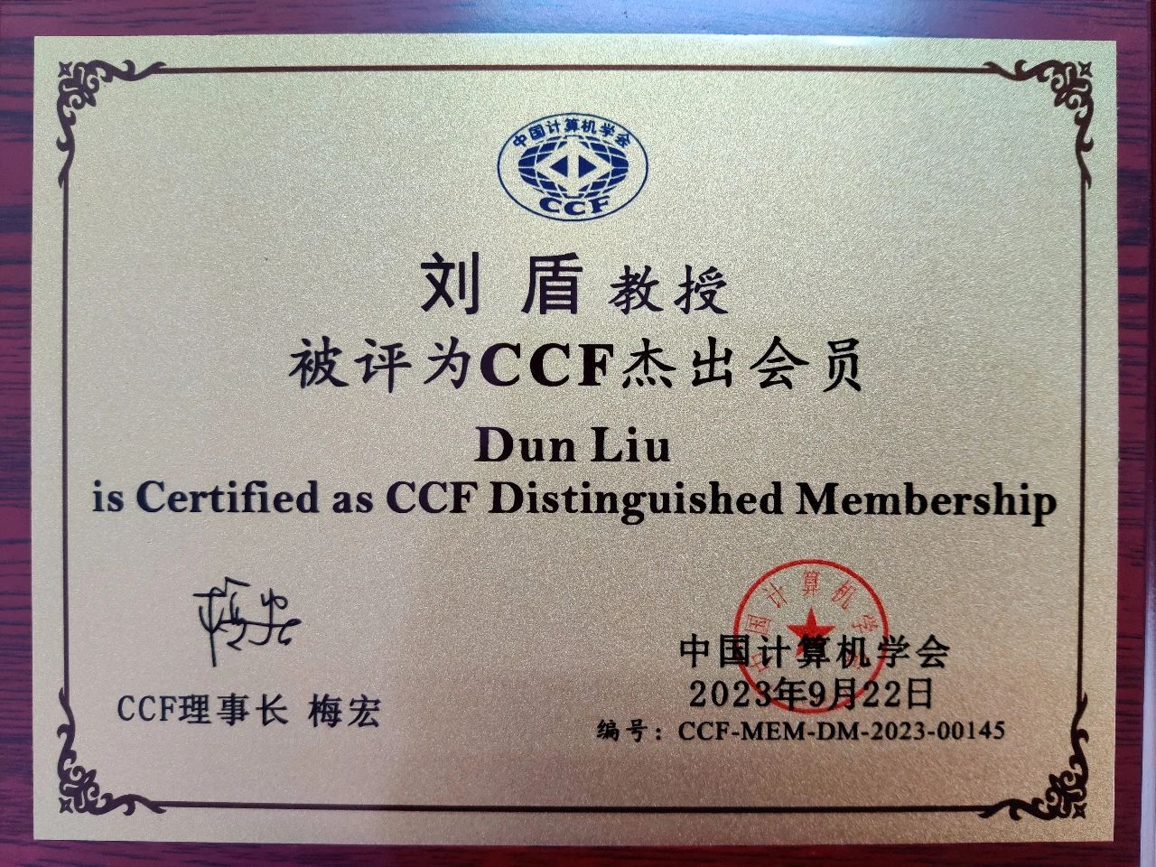 2023年9月,中国计算机学会(CCF)杰出会员评选会在北京举行。CCF会员评选委员会从学术成就、对CCF的贡献、业界认可度、CCF会龄等维度对申请人进行综合考量,最终评选出杰出会员305名。我院大数据决策与信息管理团队负责人刘盾老师成功当选杰出会员(Distinguished Membership)。