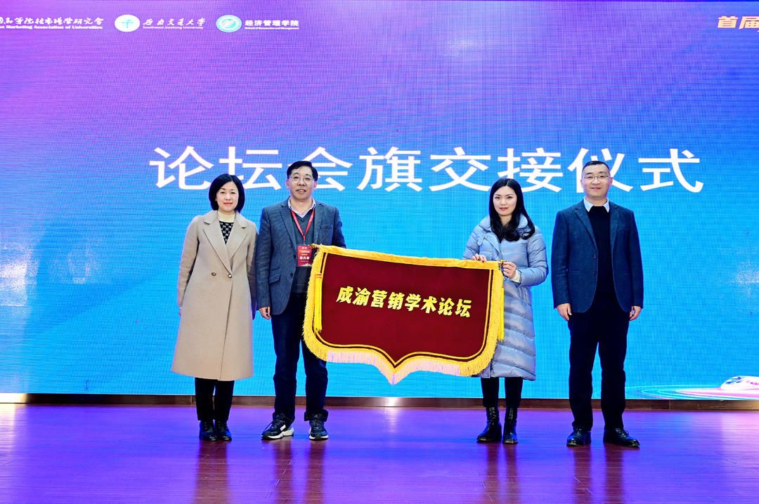分论坛议程结束后,本次论坛进入尾声。西南交通大学经济管理学院市场学系范春梅副教授主持闭幕式。西南交通大学经济管理学院聂佳佳副院长、周嘉南副院长与重庆大学邵兵家教授、重庆工商大学江霞老师交接了会旗。周嘉南副院长致闭幕词,她对首届成渝营销学术论坛的顺利举办表示热烈祝贺,对参与本次会议筹备的专家、老师和志愿者们的辛勤付出表示感谢,并代表学院对各位专家学者的莅临表示诚挚的谢意,祝愿川渝两地高校的交流合作在成渝营销学术论坛中不断深化与升华。