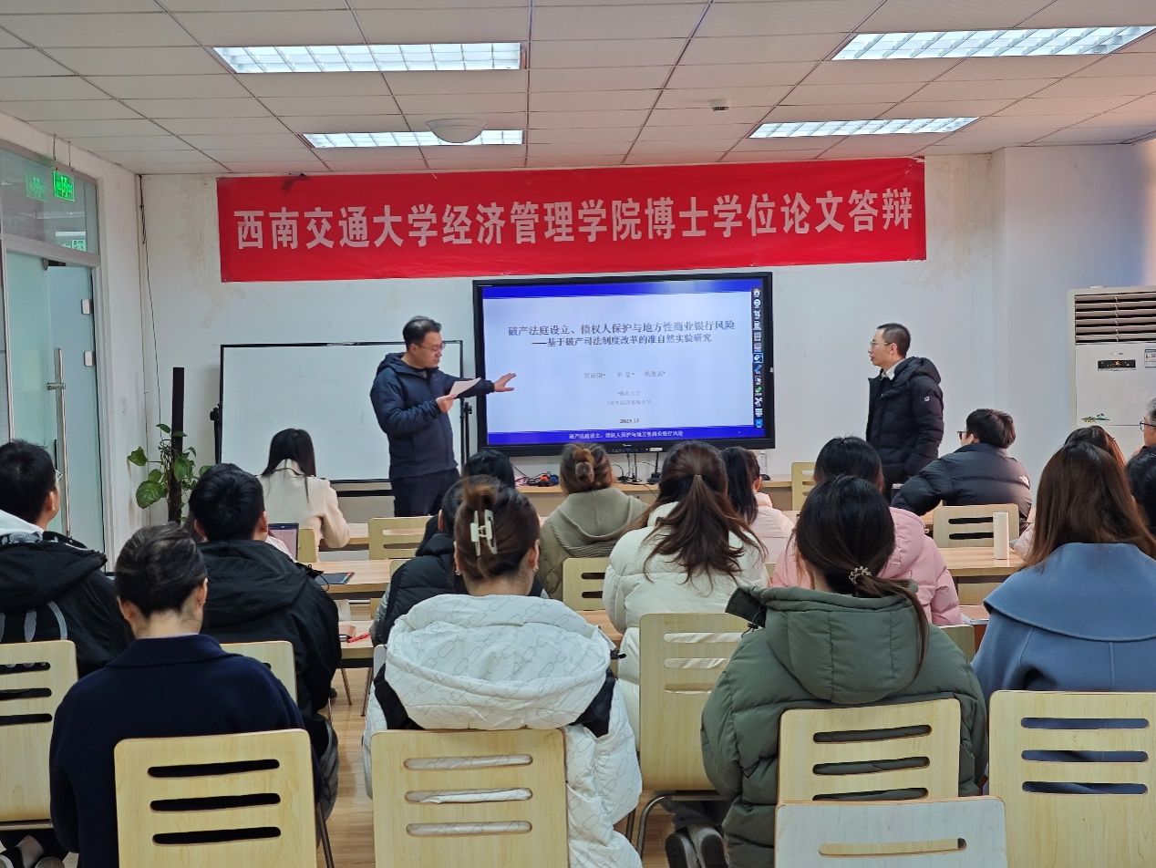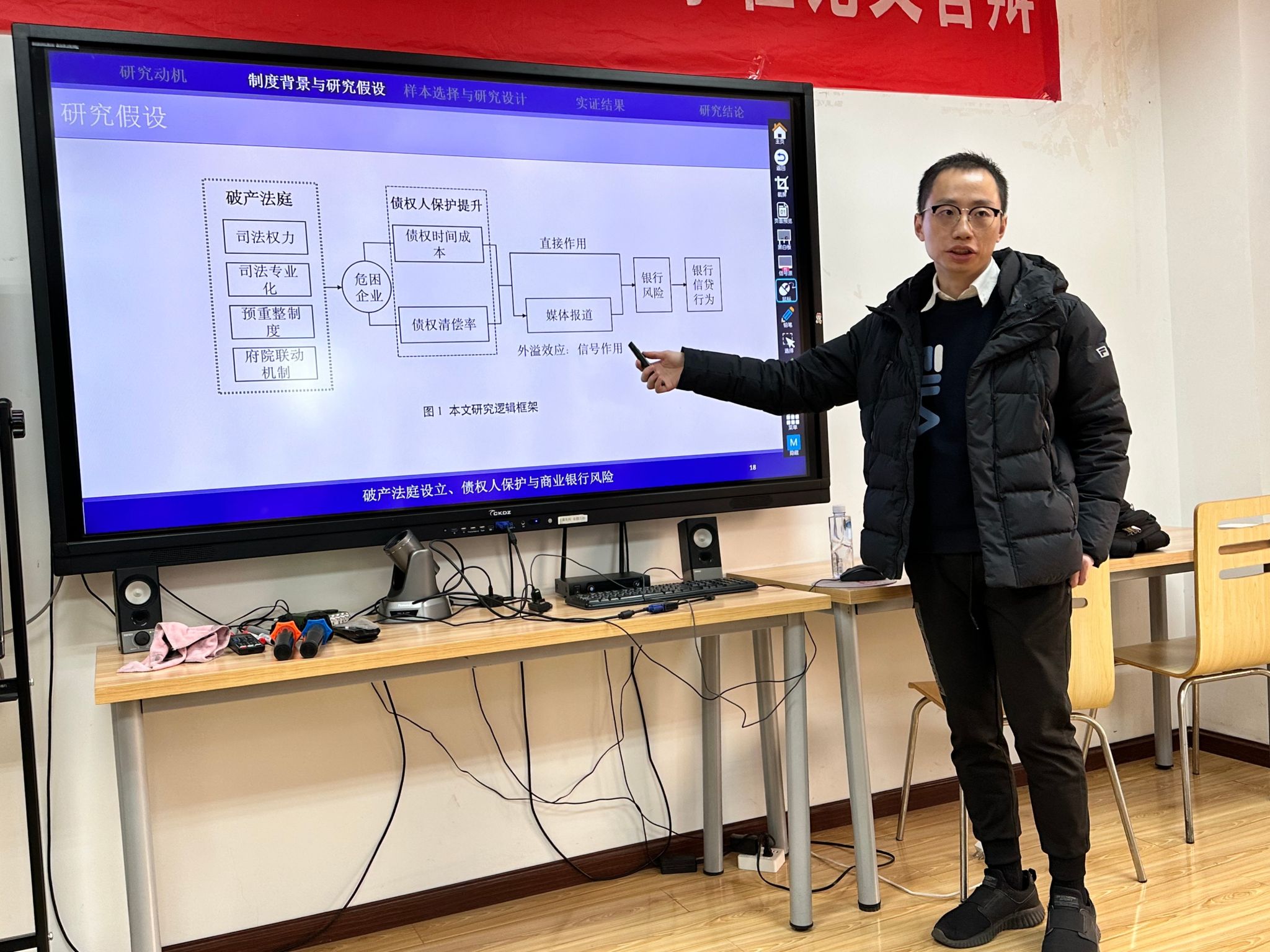 12月27日下午,重庆大学经济与工商管理学院胡诗阳副教授应邀在经济管理学院为我院师生分享题为“破产法庭设立、债权人保护与商业银行风险——基于破产司法制度改革的准自然实验研究”的学术讲座。本次学术活动由经济管理学院会计学系诸波老师主持,学院部分教师及研究生参加此次学术活动。