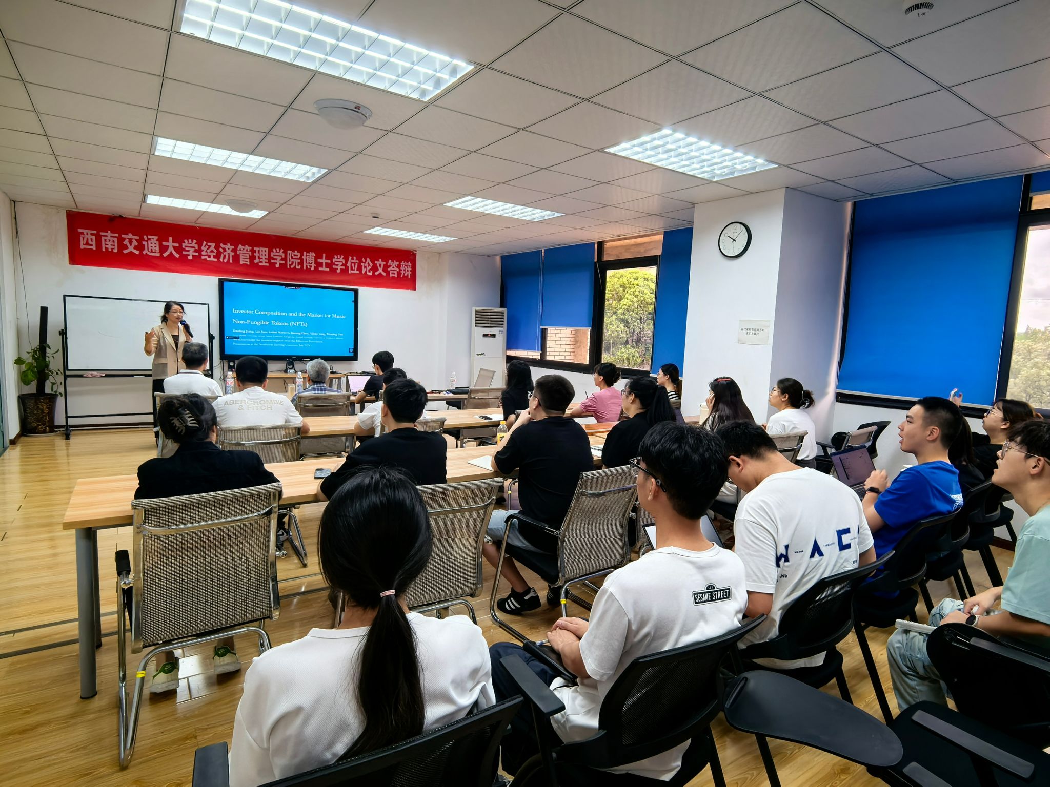 2024年7月8日上午,美国纽约州立大学石溪分校教授、西南交通大学兼职教授蒋丹凌教授应邀在经济管理学院开展题为“Investor Composition and the Market for Music Non-Fungible Tokens (NFTS)”的学术报告,马锋副院长主持了此次学术活动,学院金融与财务学系黄登仕教授、朱宏泉教授等教师及研究生参加了此次活动,马锋副院长介绍了蒋丹凌教授的学术背景及研究成果,并对蒋丹凌教授回校表示热烈的欢迎。