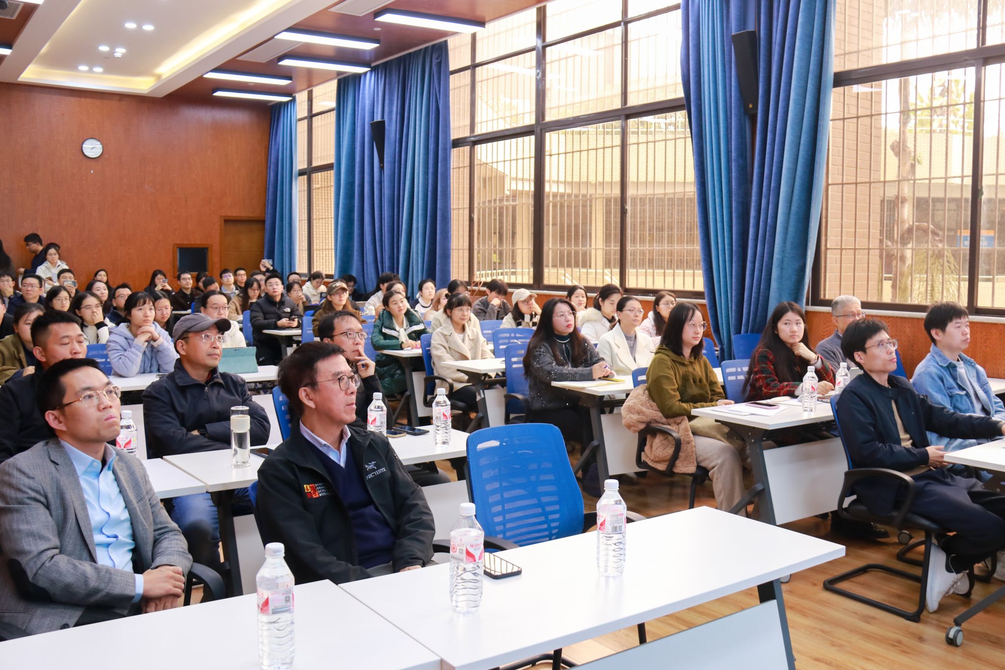 随后,香港中文大学(深圳)贾建民教授为现场师生介绍了“服务科学与创新”四川省重点实验室的研究情况。他指出,实验室对经济管理学院学术研究提供了重要支持,并鼓励师生充分利用数据资源,发挥主观能动性,推动学术创新。贾教授还分享了基于时间、空间、关联的“时空关+”分析框架在人工智能领域应用的前沿思考,鼓励同学们探索独特的研究视角与方法。他强调,经济管理学院具备良好的学术研究平台,希望同学们积极参与重点实验室的研究项目,努力实现个人与学术共同成长。