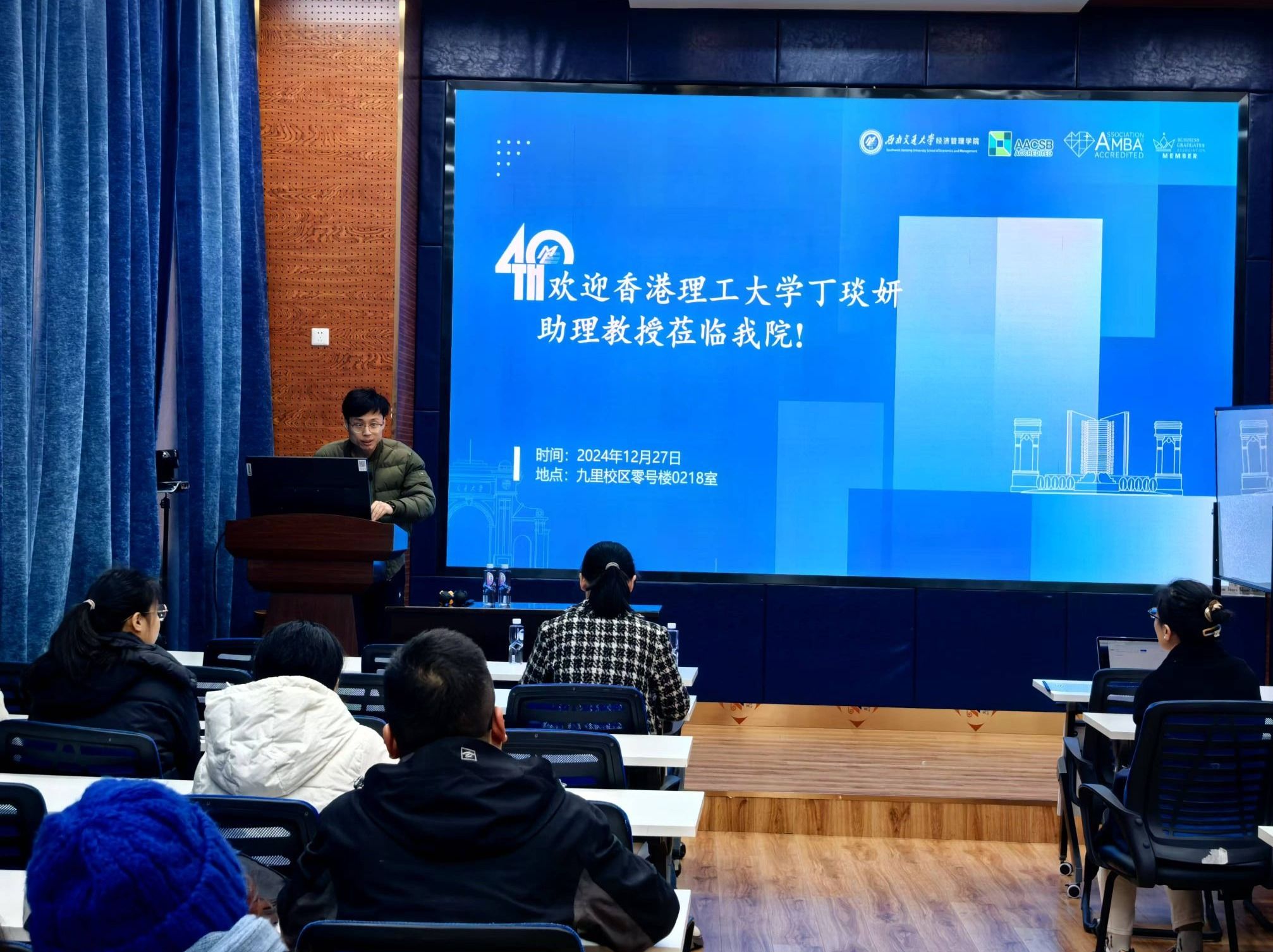 2024年12月27日上午,香港理工大学商学院助理教授丁琰妍博士应邀为我院师生带来一场题为“Network optimization and platform pricing strategies in coupled energy and transportation systems”的学术讲座。本次学术活动由学院副院长马锋教授主持,学院部分教师及研究生参与本次学术活动。