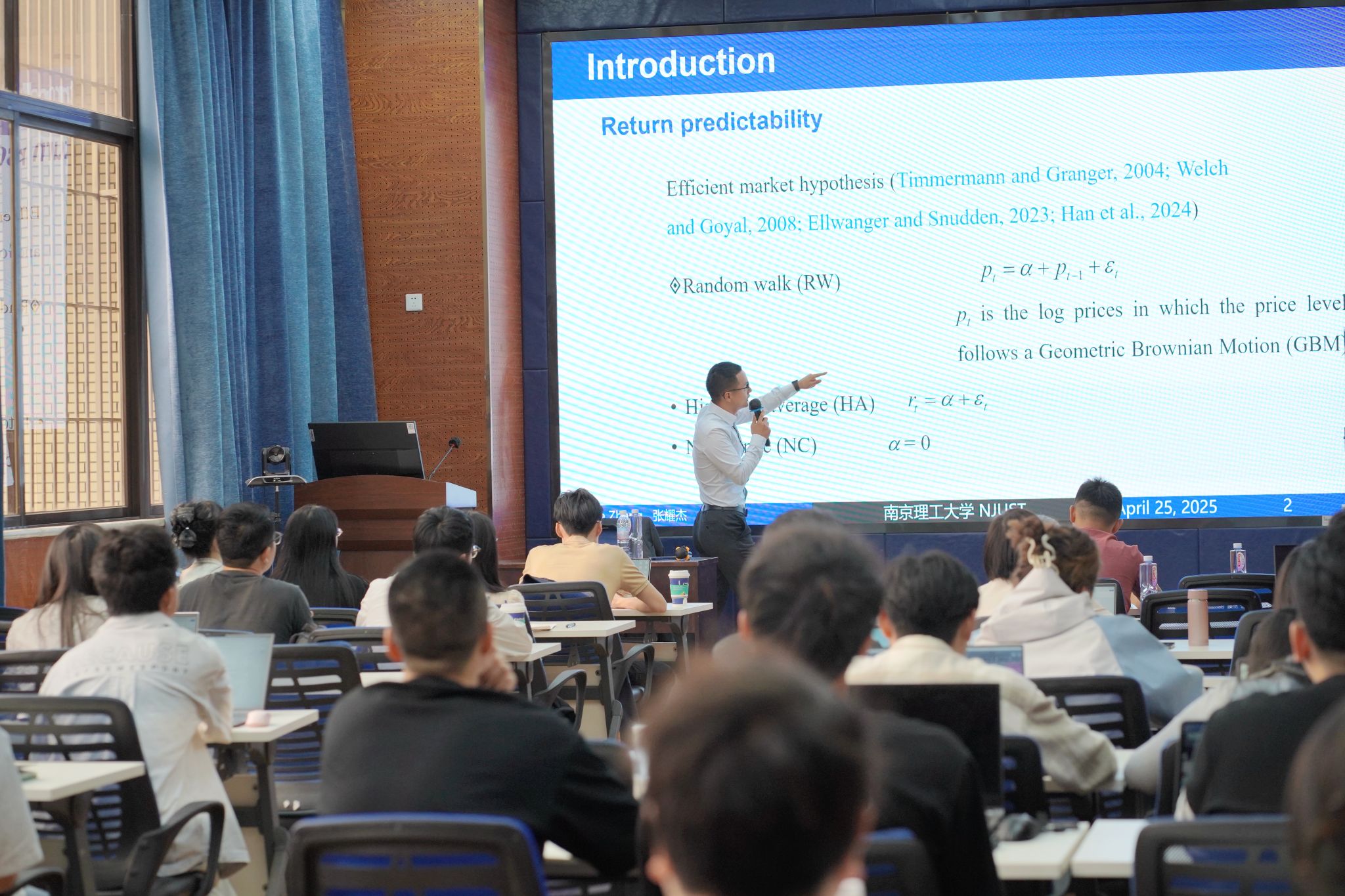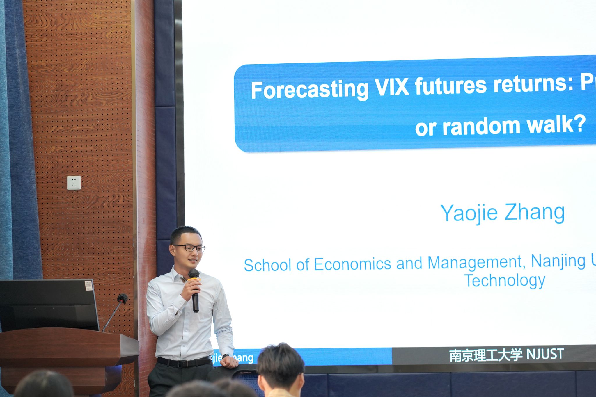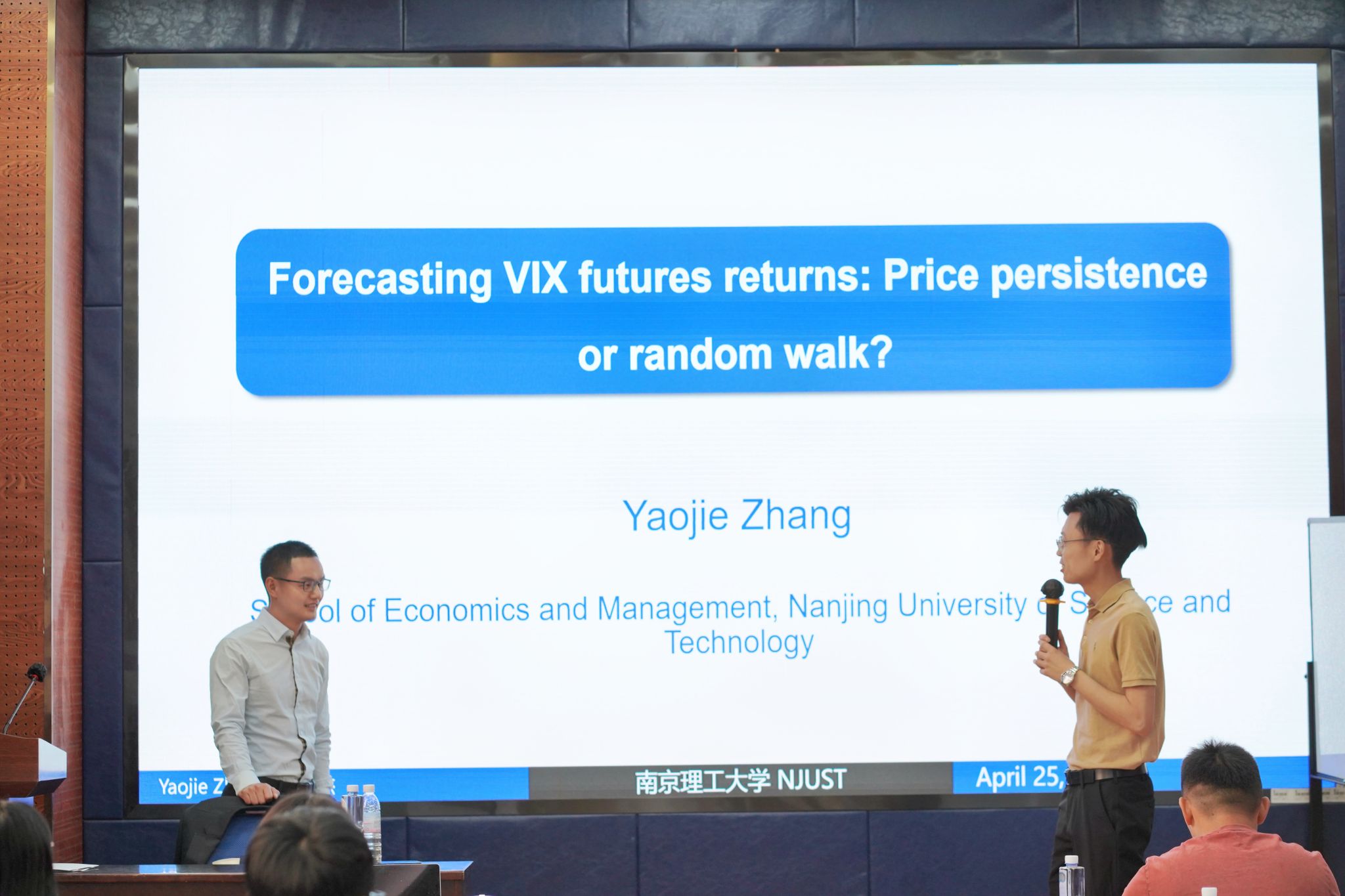 2024年4月25日上午,南京理工大学张耀杰教授应邀在西南交通大学九里校区经济管理学院为我院师生带来了一场题为“Forecasting VIX futures returns:Price persistence or random walk?”的学术讲座。本次学术活动由我院副院长马锋主持,学院部分教师及研究生积极参与。马锋副院长在开场时介绍了张耀杰教授的学术成果,并对院优秀校友莅临表示热烈欢迎与诚挚感谢。