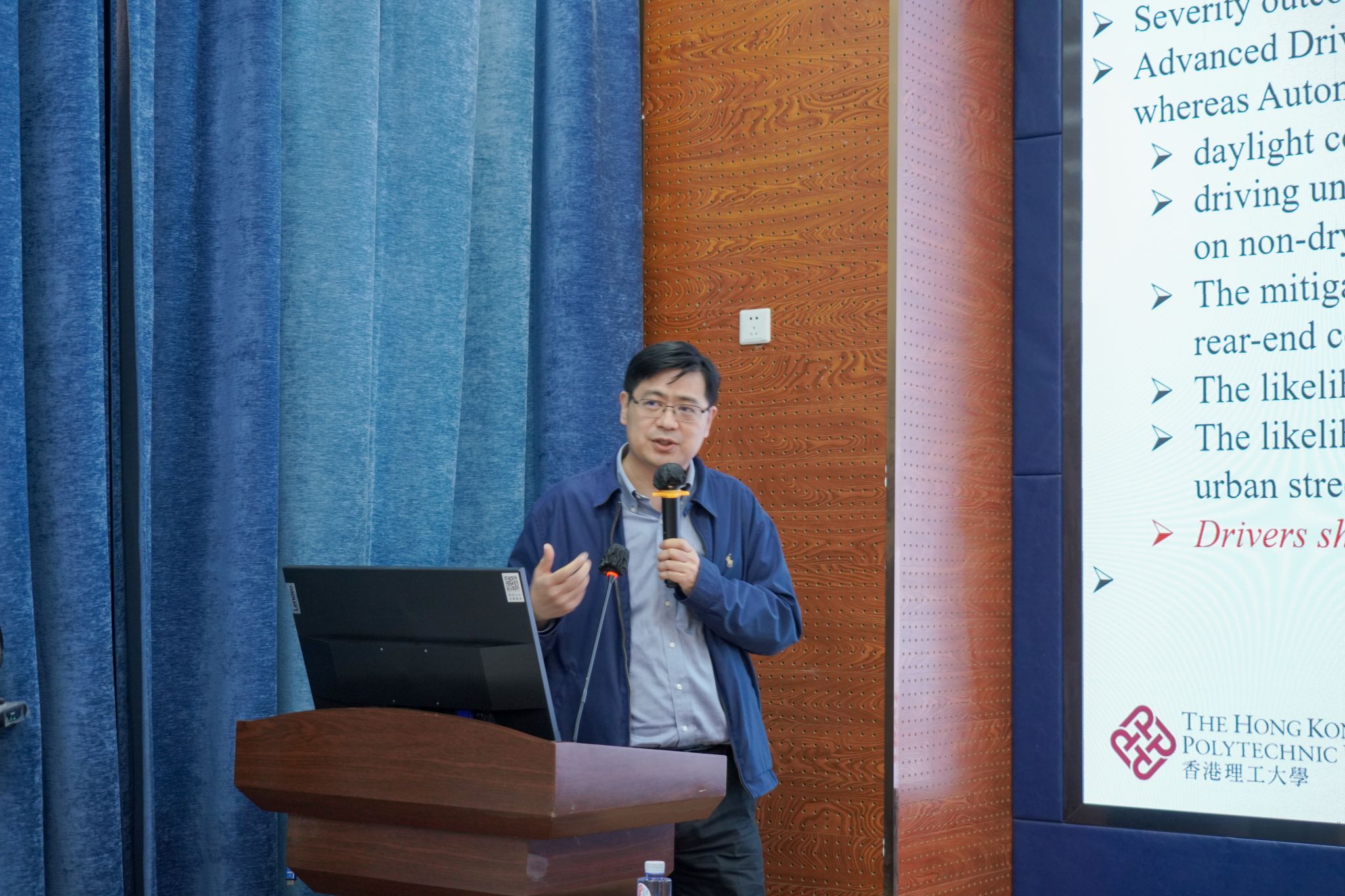 最后,来自韩国科学技术院(KAIST)陈甜甜助理教授作题为“Human Factor Research in the Era of Transport Automation”的专题报告。陈老师首先简要介绍了其所在实验室的研究方向和团队构成,随后围绕交通自动化背景下交通安全的重要性,深入探讨了影响交通风险的多种因素。陈老师重点分析了人因在自动驾驶系统中的关键作用,并详细阐述了其研究对象的多样性,包括驾驶员、乘客以及脆弱道路使用者等群体。在问答环节,陈老师与在场师生就交通事故研究中多源数据协同应用展开了深入探讨。