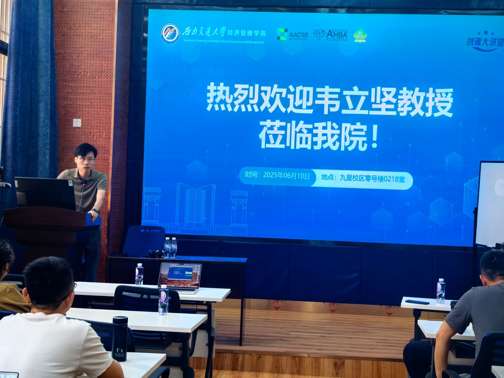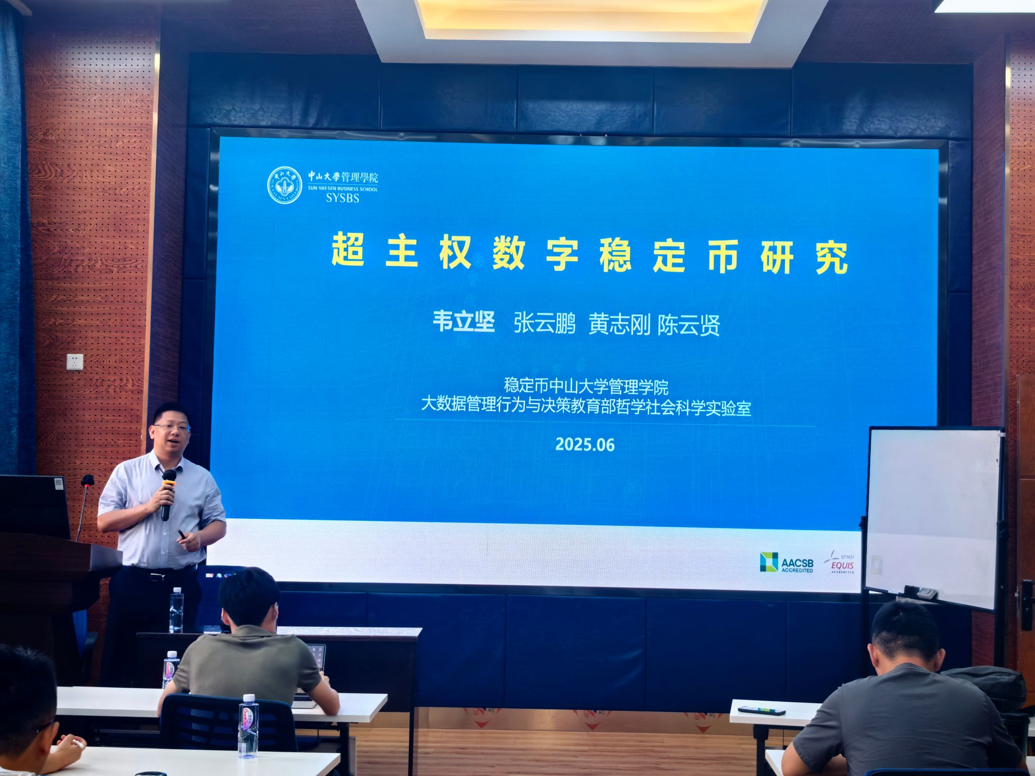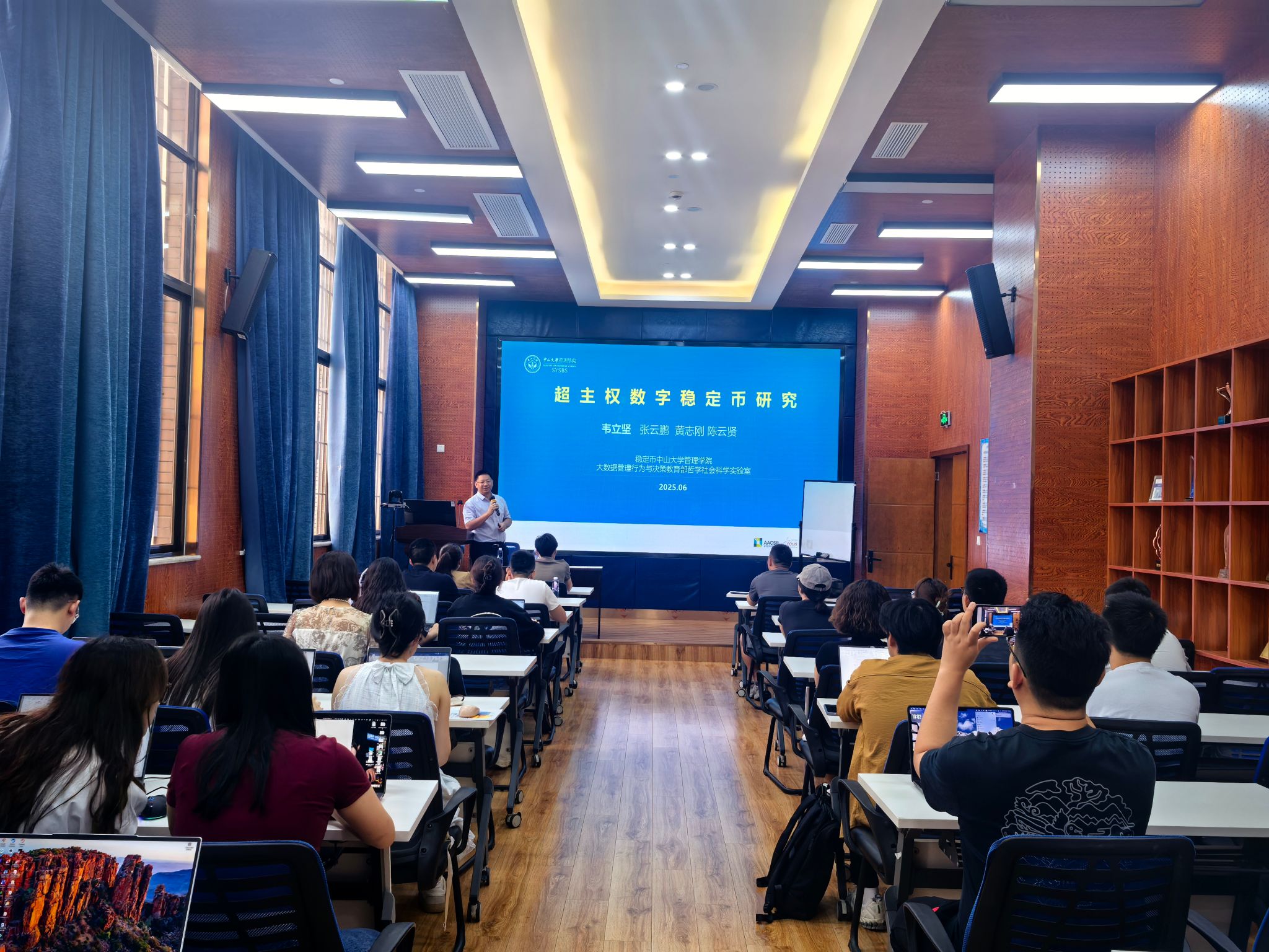2025年6月10日上午,中山大学管理学院韦立坚教授应邀为我院师生带来一场题为“超主权数字稳定币研究”的学术讲座。本次学术活动由经济管理学院副院长马锋教授主持,学院部分教师及研究生参加了此次活动。马锋副院长首先介绍了韦立坚教授的学术背景与成就,并代表学院对韦立坚教授表示热烈的欢迎与诚挚的感谢。