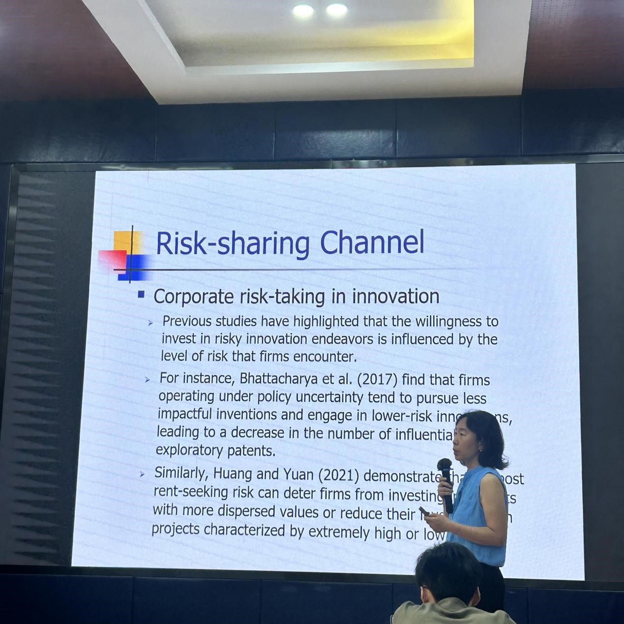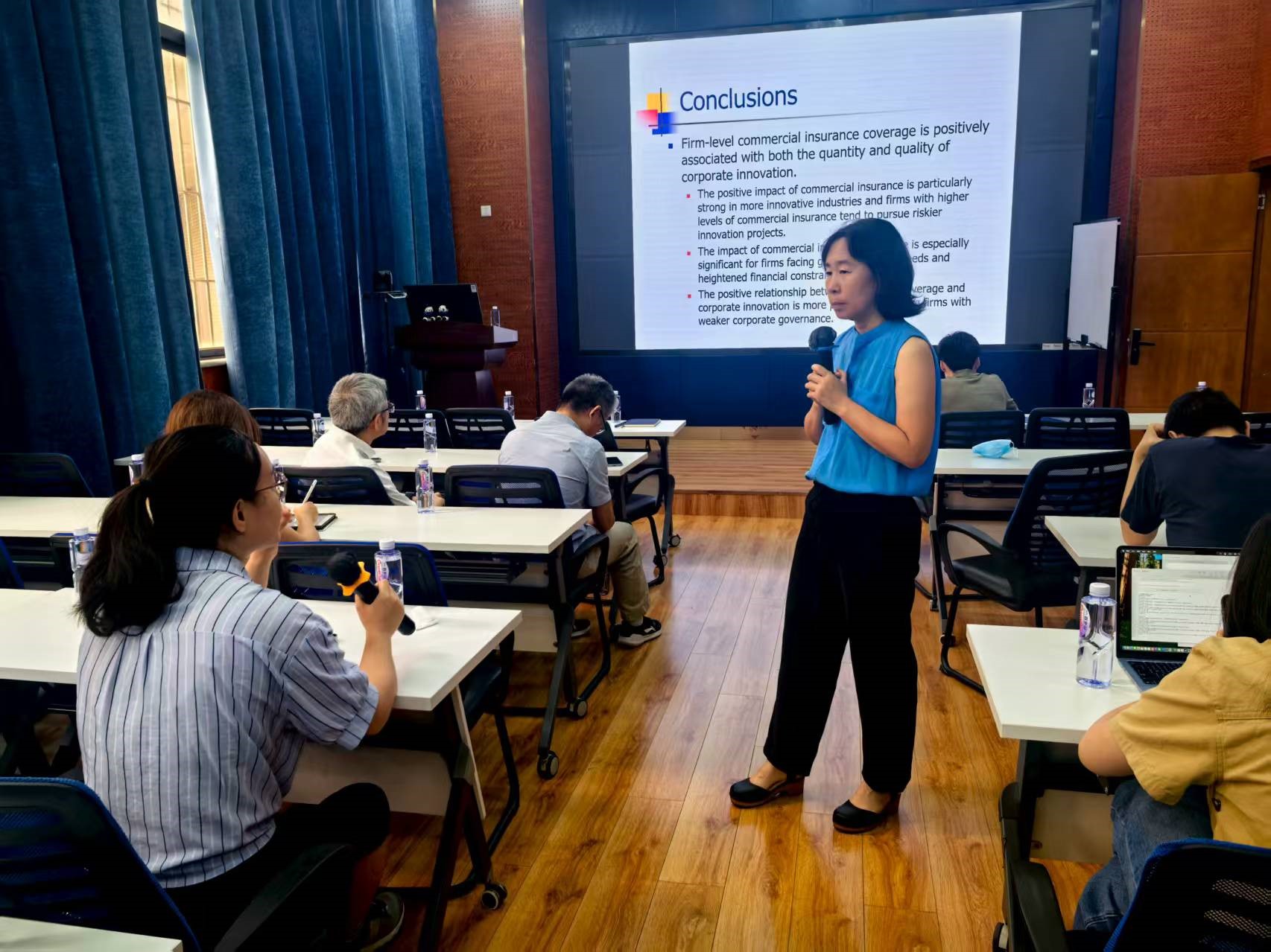 2025年7月8日上午,学院特邀美国北伊利诺伊大学(Northern Illinois University)高文莲副教授带来题为“The Real Effects of Commercial Insurance: The Case of Corporate Innovation”的精彩讲座。此次讲座由经济管理学院副院长马锋教授主持,学院部分师生参加此次活动。