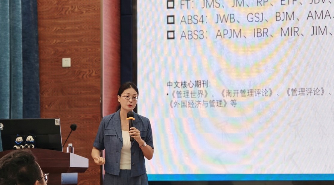 7月10日下午,西南交通大学经济管理学院黄缘缘老师带来了题为《战略管理研究写作技巧》的精彩讲座。黄老师系统讲解了学术写作要点,写作前需明确目标期刊与理论方向;写作中应以学术想象力驱动,融合现象、理论与数据聚焦理论贡献,并注重文字严谨等。讲座还详细指导了论文各部分撰写,有效解答了参会者的写作困惑。
