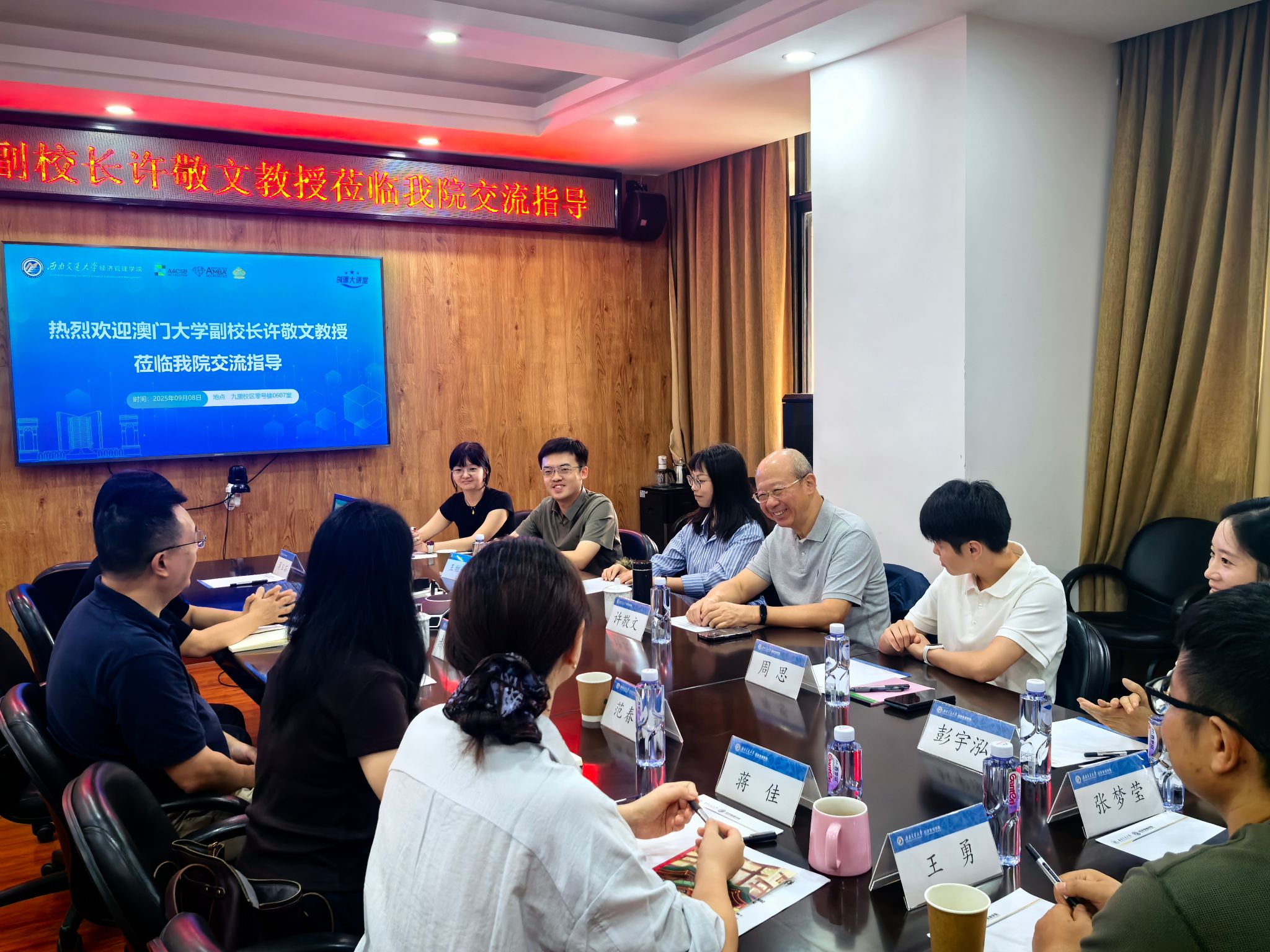 2025年9月8日上午,澳门大学副校长许敬文教授莅临西南交通大学经济管理学院进行学术交流与指导。经济管理学院郝辽钢副教授主持本次座谈会。郝辽钢副教授首先对许副校长的到访表示感谢,随后详细介绍了许副校长作为市场学领域国际知名学者的学术背景和专业成就,并介绍了参与本次交流的校外教师:四川民族学院周思老师和成都信息工程大学彭宇泓老师。