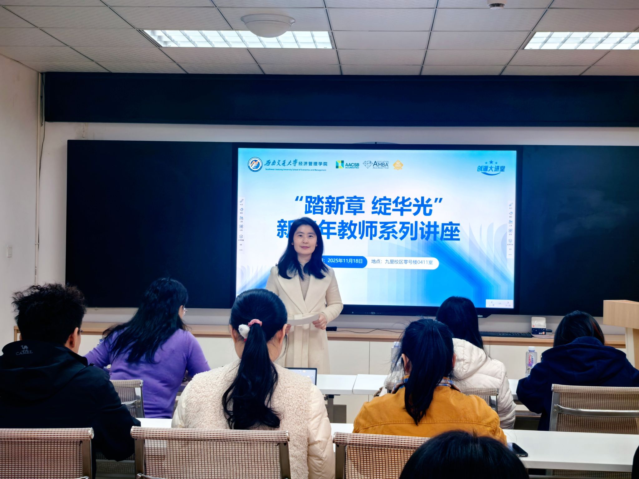 2025 年 11 月 18 日下午,西南交通大学经济管理学院 “踏新章 绽华光” 新青年教师系列讲座在九里校区零号楼 0411 室如期举行。本次讲座由市场学系助理教授雷韶辉主讲,聚焦 “AI 技术应用背景下的消费者伦理问题”。该系主任范春梅副教授主持讲座,学系部分师生参加了此次讲座。