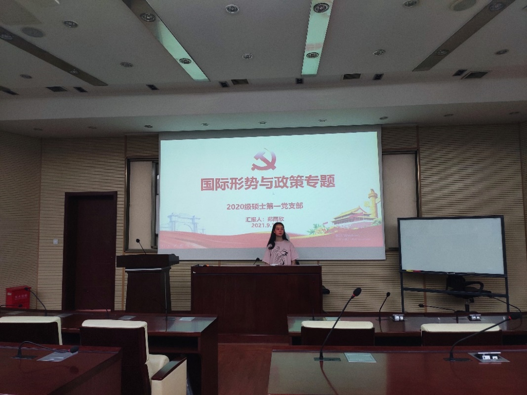 按照学校党委的统一安排部署,经济管理学院党委根据《中共西南交通大学委员会关于开展党史学习教育的实施方案》的要求,结合实际制定了《经济管理学院党委党史学习教育工作方案》。为进一步落实好党史学习教育工作,2021年9月23日(星期四)16时30分,经济管理学院硕士2020级第一党支部在九里校区0212教室,召开了国内外形势与政策专题学习组织生活会。本次会议由支部内的郑雨欣同志进行主讲。支部内现有正式党员11名,预备党员3名,积极分子5名,此次会议共有16人参与,3人请假。