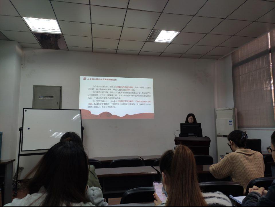 首先,魏倩倩同志为大家讲解了《与世界相交 与时代相通 在可持续发展道路上阔步前行》的主要内容:第一,要坚持开放联动,推进互联互通。要推动建设开放型世界经济,不搞歧视性、排他性规则和体系,推动经济全球化朝着更加开放、包容、普惠、平衡、共赢的方向发展。要加强基础设施“硬联通”、制度规则“软联通”,促进陆、海、天、网“四位一体”互联互通。第二,坚持共同发展,促进公平普惠。只有解决好发展不平衡问题,才能够为人类共同发展开辟更加广阔的前景。第三,坚持创新驱动,增强发展动能。要大力发展智慧交通和智慧物流,推动大数据、互联网、人工智能、区块链等新技术与交通行业深度融合,使人享其行、物畅其流。第四,坚持生态优先,实现绿色低碳。建立绿色低碳发展的经济体系,促进经济社会发展全面绿色转型,才是实现可持续发展的长久之策。第五,坚持多边主义,完善全球治理。