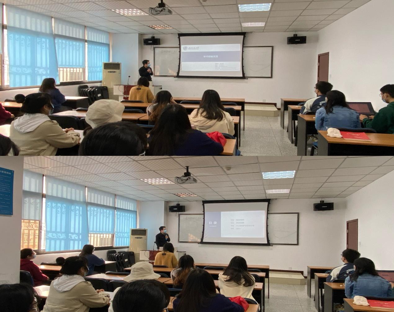 支部党员杜华峰同志科研成绩优异,目前已发表论文有学校期刊目录A刊2篇,获得本年度国家奖学金,被评为优秀研究生标兵。本次学术经验分享,杜华峰同志为我们深入的分享了自己近一年以来的科研经历与体会,他首先提到,作为学术研究生,我们对待学术研究一定要一丝不苟,在写作论文时需要全身心投入,要使自己的研究内容充满逻辑;其次,杜华峰同志为我们具体分享了他的投稿经历,从他自身的经历中总结了经验供同学们学习借鉴。