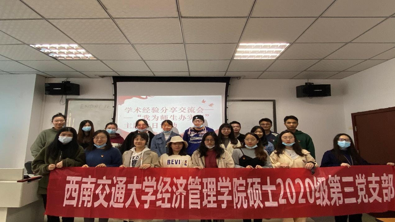 为了贯彻落实党组织关于“我为师生办实事”主题实践活动的决策部署,扎实推进党史学习教育,持续推进“我为群众办实事”实践活动走向深入,切实将学习成效转化成工作动力,11月4日,经济管理学院硕士2020级第三党支部开展了“我为师生办实事”主题党日活动。本次活动以科研经验分享为主题,为班级同学提供学术研究经验互相借鉴的学习机会,由支部党员杜华峰同志作为学术经验分享主讲人,并邀请到了贾佳老师参与此次活动。