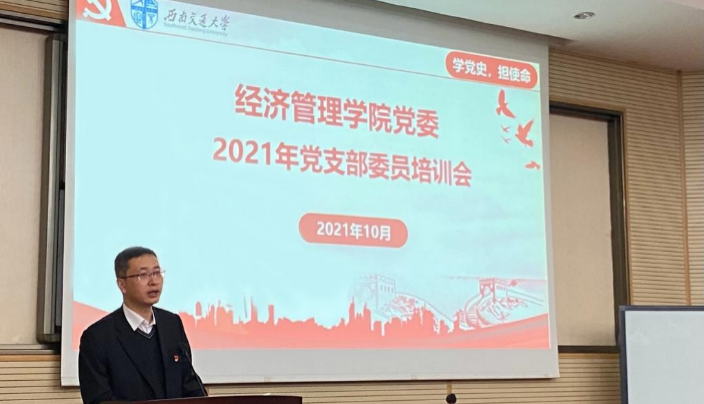 2021年10月28日下午,经济管理学院党委在九里校区0202会议室,组织教职工和学生党支部委员进行了工作培训。学院党委书记王斌、副书记杨宏毅和党委组织员分别作了培训指导,全体教职工及学生党支部书记和委员参加了培训。