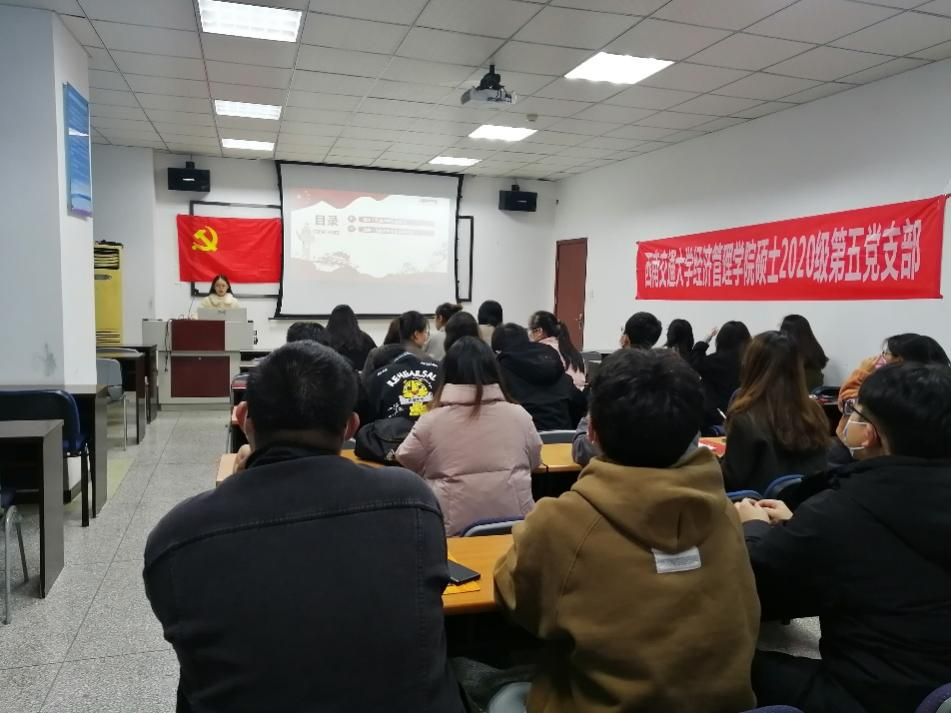 2021年11月18日晚19:30,经济管理学院硕士2020级第五党支部于0号教学楼0317开展十九届六中全会学习和党员应知应会答题活动,本次会议由支部成员刘柯同志带领全体成员进行学习,出席会议的有支部内党员、预备党员和积极分子。