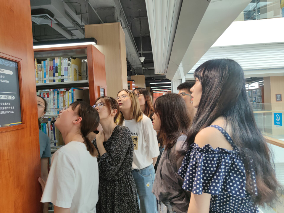 图书馆老师耐心地讲解怎样了解茅以升图书馆每层楼图书的大致分布位置,并根据图书的科目属性进行针对性的查找。正如俗语所说的“无规矩不成方圆”,图书馆对于图书的摆放和安排都是依据一定的规则的,同一个书架里的图书是按照“Z”字型进行摆放,不同书架之间则依据就近原则。我们不仅更加了解图书的摆放,而且便于寻找书籍或者给予他人帮助。