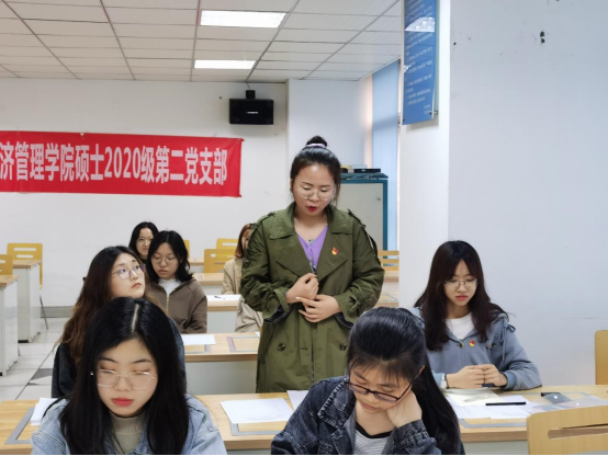 2021年3月17日下午,经济管理学院硕士2020级第二党支部在西南交通大学九里校区0号楼0302教室召开了党员大会,会议由党支部书记文静柯同志主持,会上开展了批评与自我批评,并进行了“中国之治”政治学习,最后进行了民主评议,支委会对每位党员进行政治素养诊断。