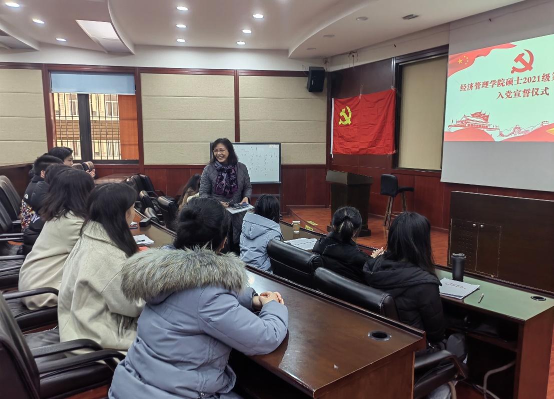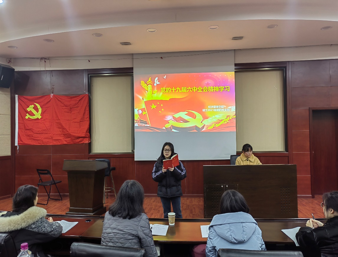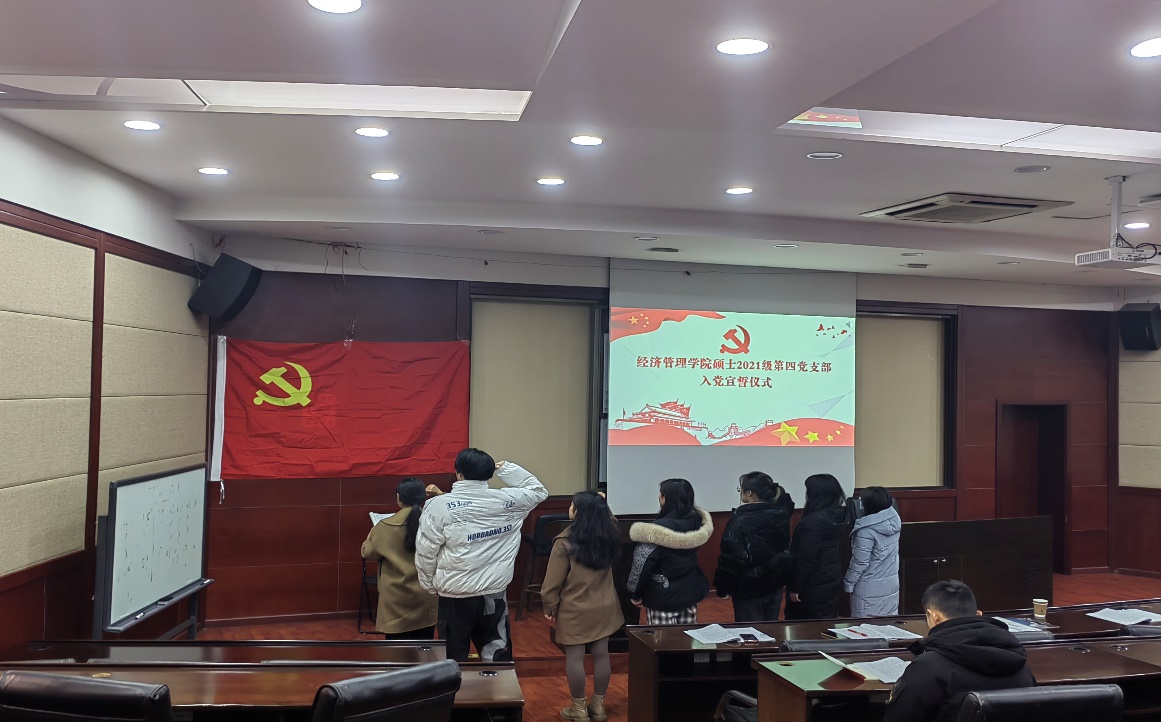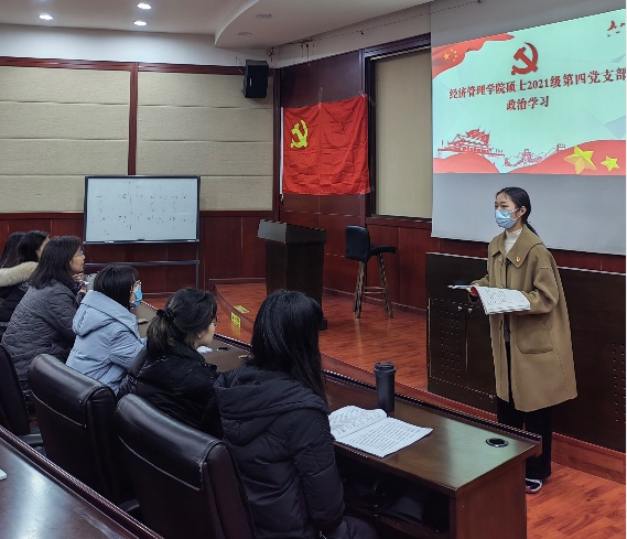 2021年12月30日下午三点在九里校区0224教室,西南交通大学经济管理学院硕士2021级第四党支部开展了“党的十九届六中全会精神”的政治学习活动及预备党员入党宣誓仪式。活动由党支部书记吴欣悦主持,校巡视组陈燕灵老师出席指导,党支部共30人全部参加了此次活动。